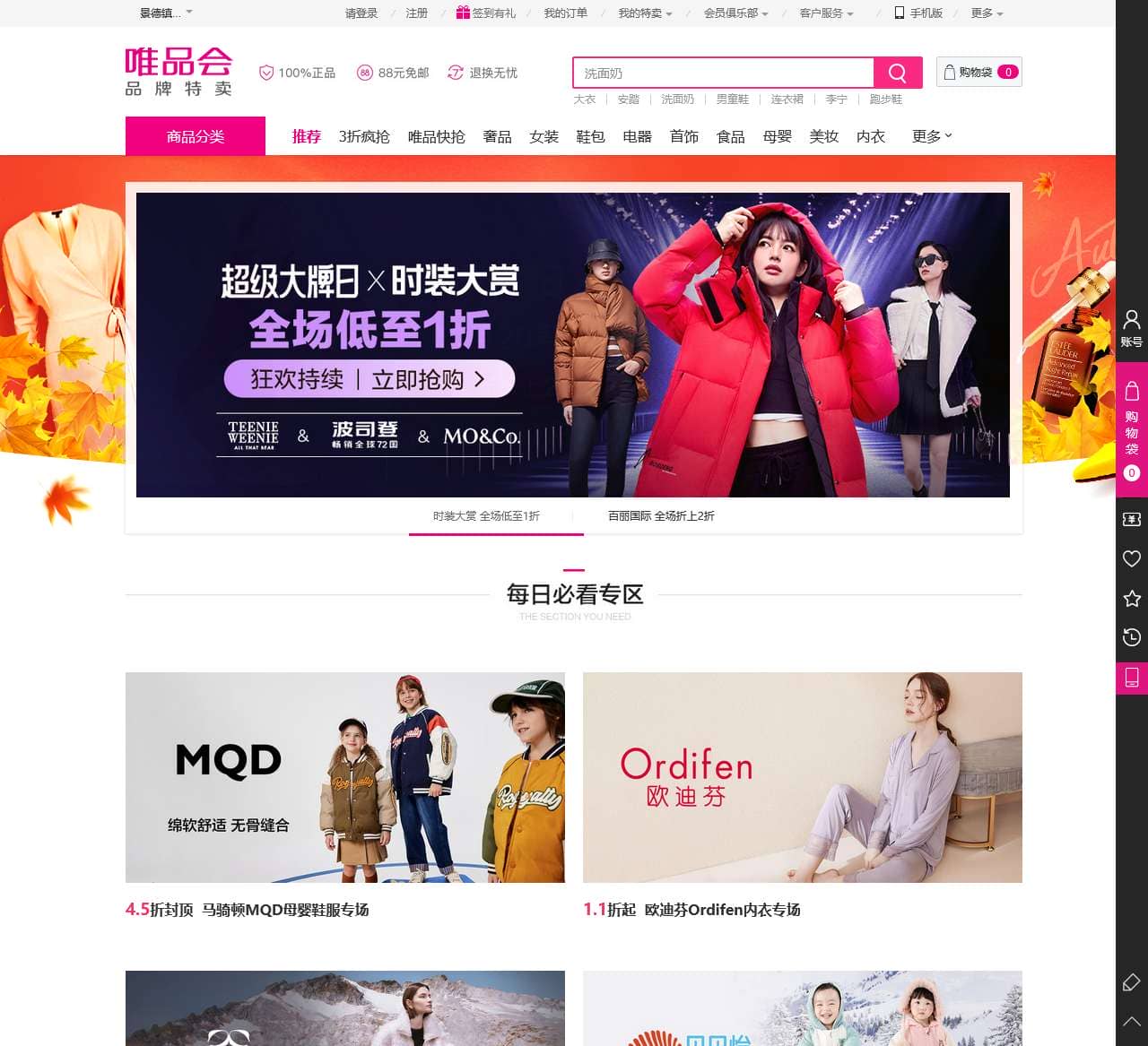 唯品会vip购物网以1-7折超低折扣对全球各大品牌进行限时特卖,商品囊括服装、化妆品、家居、奢侈品等上千品牌。100%正品、低价、7天无理由退货。