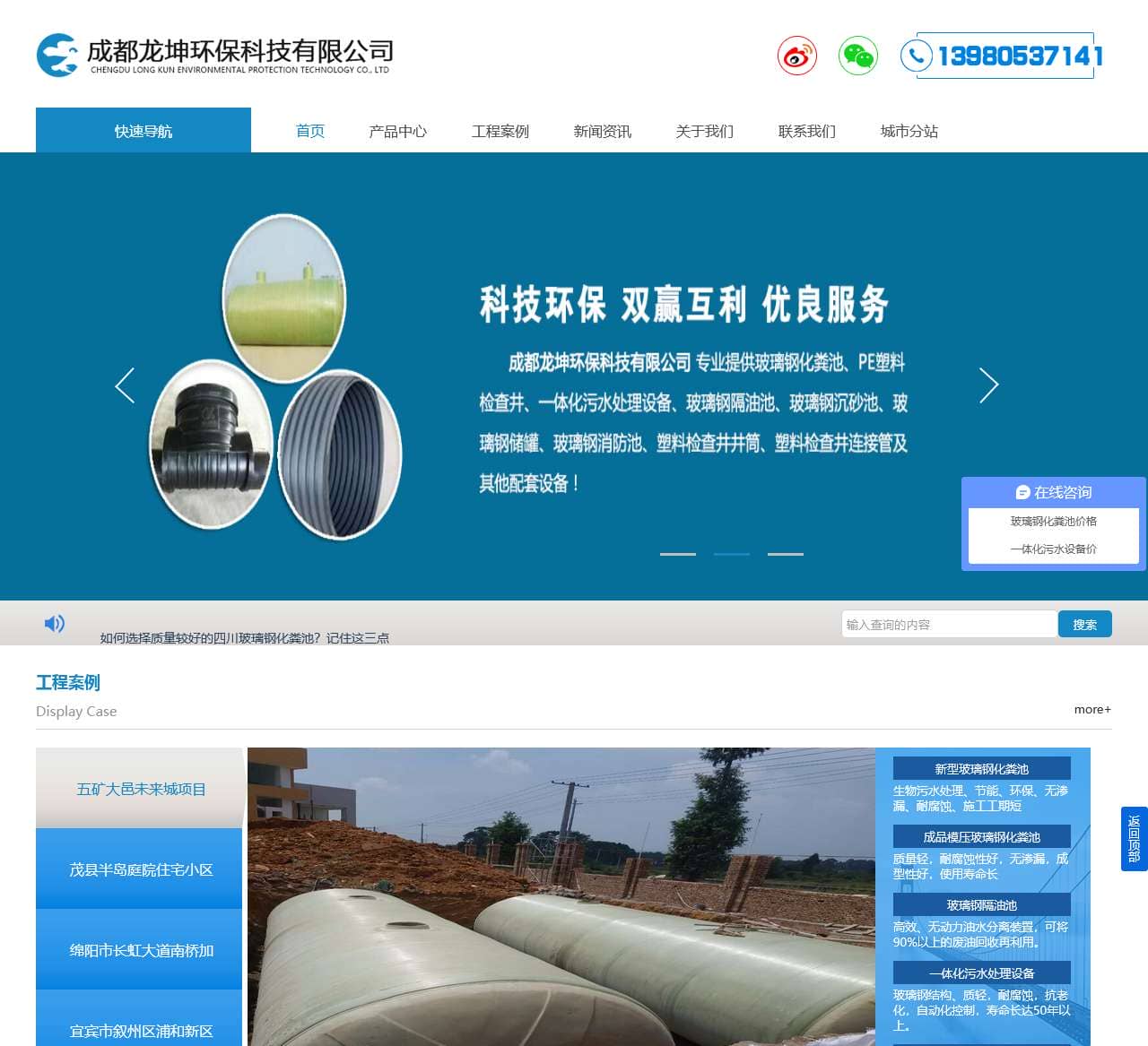 | 项目案例 | 重庆南岸化粪池项目、五矿大邑未来城项目、茂县半岛庭院住宅小区项目、绵阳市长虹大道南桥加油站整体重建项目、宜宾市叙州区浦和新区安置项目、成都龙泉驿区柏合镇大运会安居项目、甘孜县来马镇公路项目、成都青羊区文家桥农贸市场、南充营山县两车玻璃钢化粪池项目、成都彭州小区化粪池项目 |
