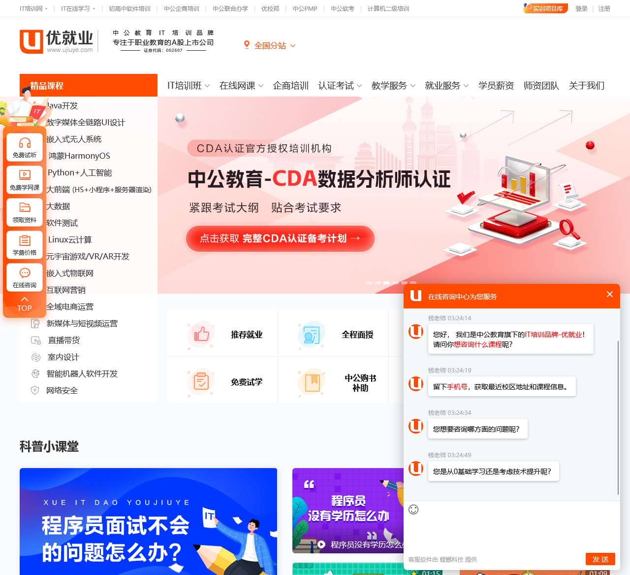 【中公优就业-国内知名IT培训机构】提供实战IT培训课程,含JAVA培训、Python培训、大数据培训、UI设计培训、Web前端培训班、Linux培训、游戏开发培训机构、软件测试培训、营销、网络安全培训等,是IT培训优选。