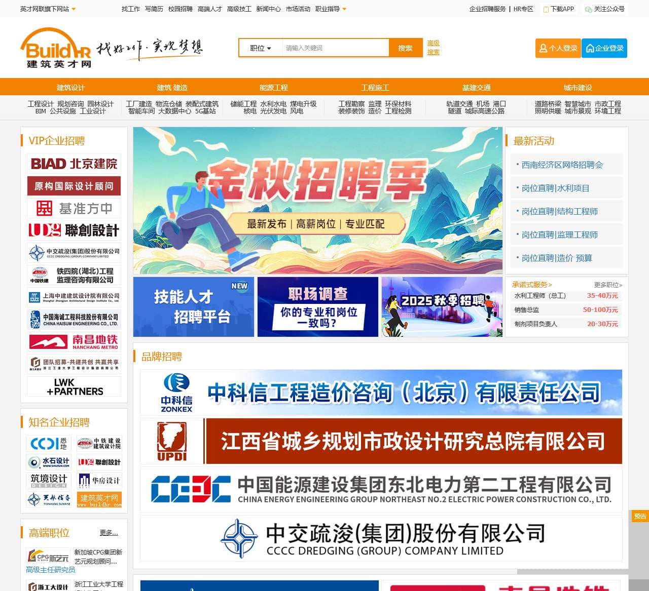 | 职位类别 | 建筑设计、工程设计、规划咨询、园林设计、BIM、公共设施、工业设计、建筑、建造、工厂建造、物流仓储、装配式建筑、智能车间、大数据中心、5G基站、能源工程、储能工程、水利水电、煤电升级、核电、光伏发电、风电、工程施工、工程勘察、监理、环保材料、装修装饰、造价、工程检测、基建交通、轨道交通、机场、港口、隧道、城际高速公路、城市建设、道路桥梁、智慧城市、市政工程、照明供暖、城市景观、环境工程 |