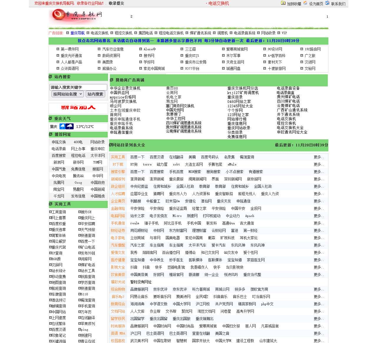重庆交换机导航网是重庆交换机网旗下为电话交换机通讯产品网站推广平台;同时也免费收录优秀的企业网站及个人网站!