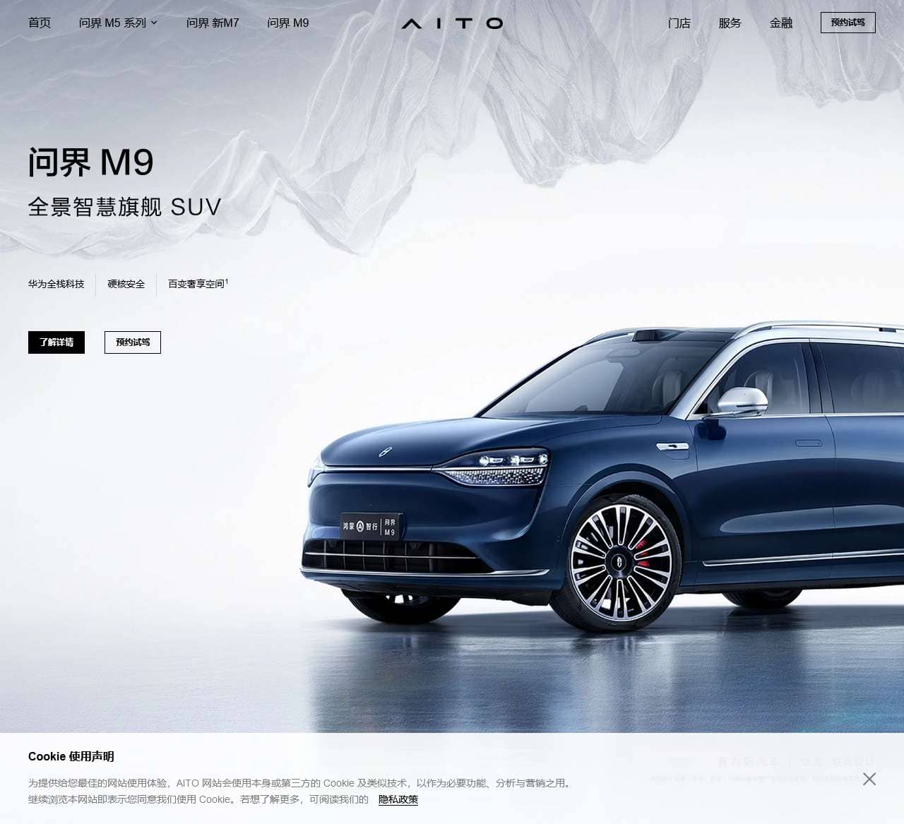 | 首页 | 问界 M5 系列 | 问界 新M5 | 问界 M5 智驾版 | 问界 M5 纯电智驾版 | 问界 M5 标准版 | 问界 M5 纯电标准版 | 问界 新M7 | 问界 M9 | 门店 | 服务 | 金融 |