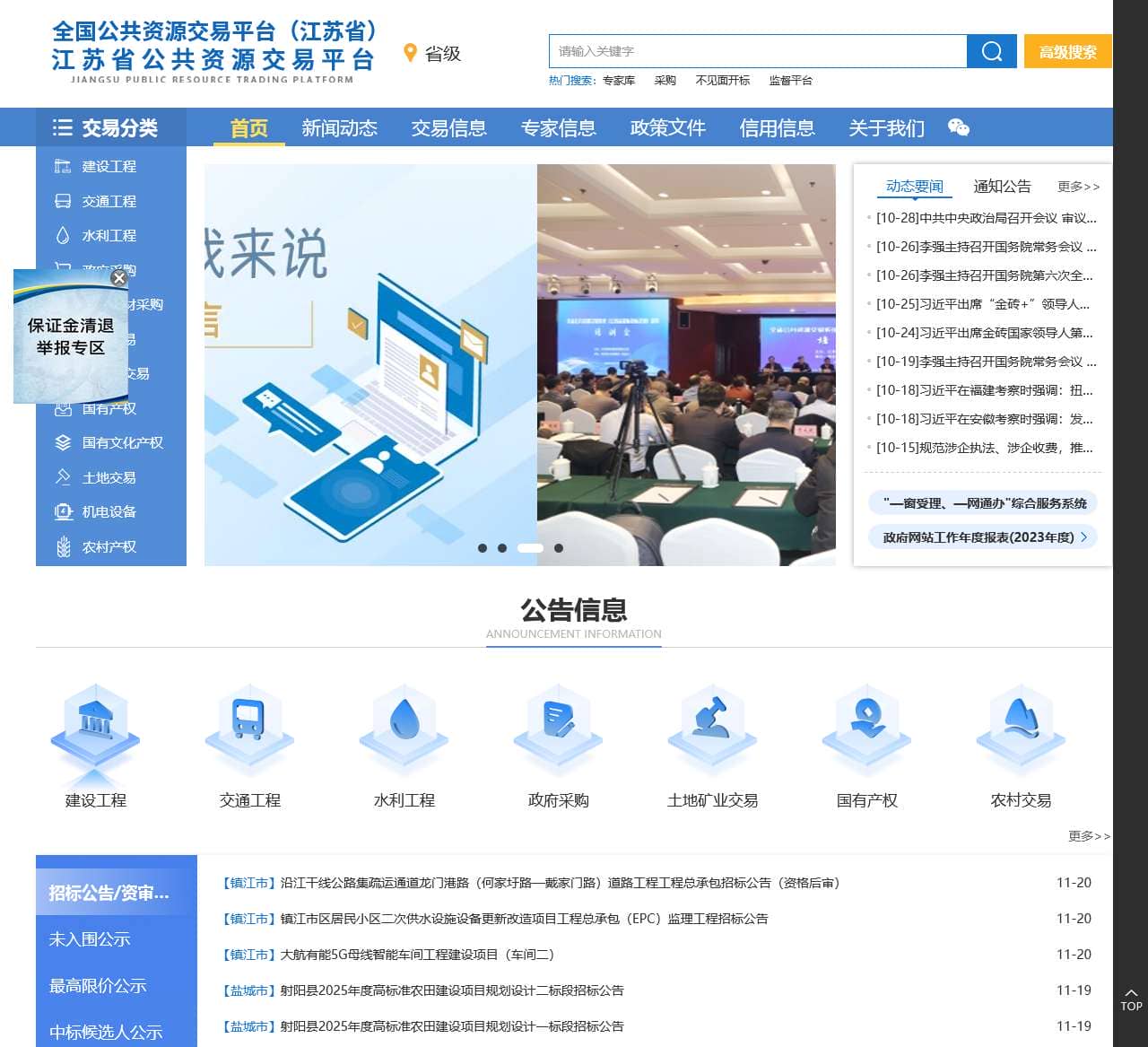 | 功能分类 | 高级搜索、专家库、采购、不见面开标、监督平台、建设工程、交通工程、水利工程、政府采购、药品耗材采购、矿业交易、排污权交易、国有产权、国有文化产权、土地交易、机电设备、农村产权 |