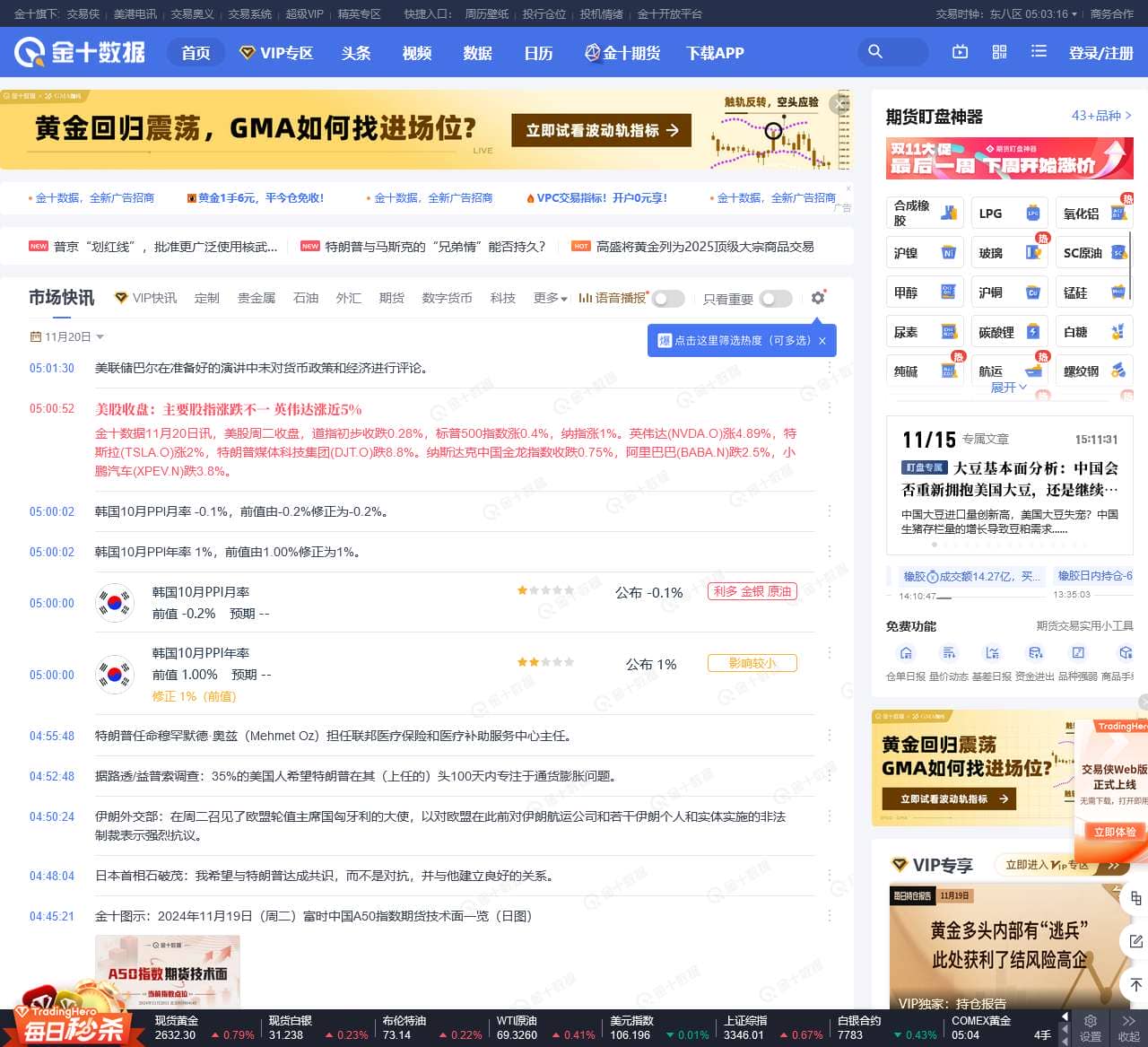 | 首页 | 首页、VIP专区、头条、视频、数据、日历、金十期货、直播间 |