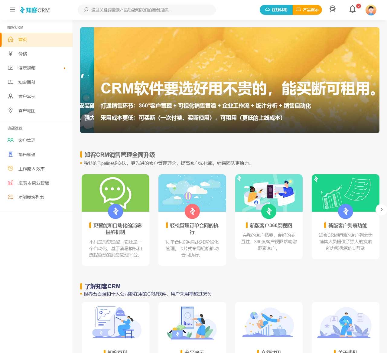 | 欢迎访问知客CRM网站 | 提议通过演示视频或在线试用快速了解知客CRM的功能和特性 |