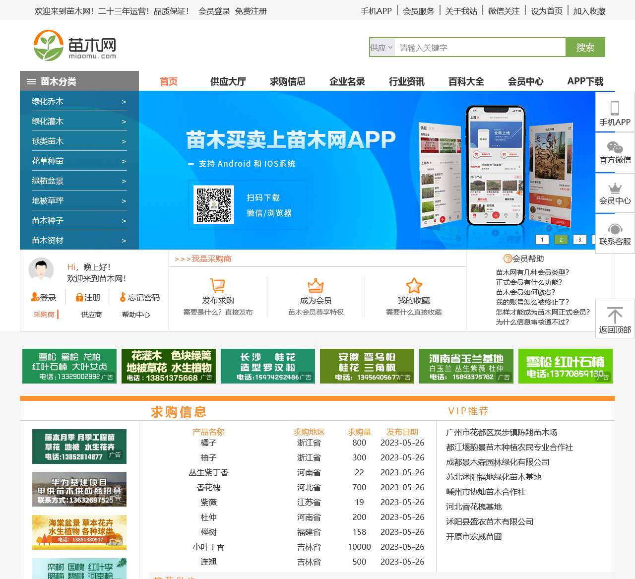 中国苗木网注重移动端用户的体验,提供了手机APP供用户下载和使用。对于供应商和买家而言,中国苗木网的供应大厅是一个重大的交易平台,您可以在该平台上发布供应和求购信息,并浏览其他企业的名录信息。