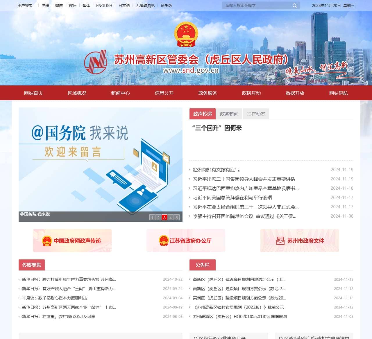 | 公告栏 | 高新区(虎丘区)建设项目规划用地选址公示, 高新区(虎丘区)建设项目规划方案公示,《苏州高新区镇村布局规划(2023版)》批前公示, 苏州高新区(虎丘区)HQ0201单元01街区详细规划, 关于公开征求《苏州高新区房屋征收搬迁补偿房票》意见等。 |