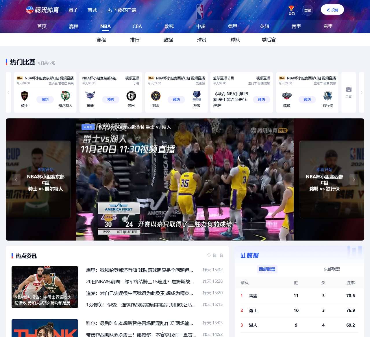 | 今天11:30 | NBA杯小组赛西部B组视频直播 | 爵士 vs 湖人 | —— | 预约 |