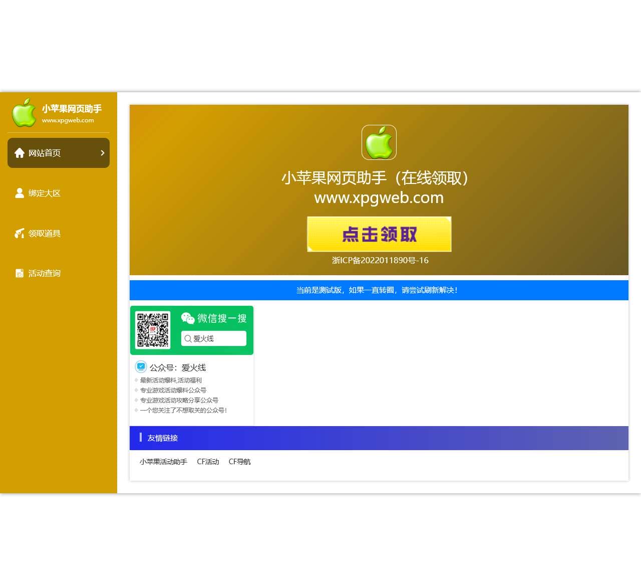 小苹果网页助手是一款便捷的在线活动领取工具,给CF、CFHD、逆战等玩家提供的游戏活动领取平台!