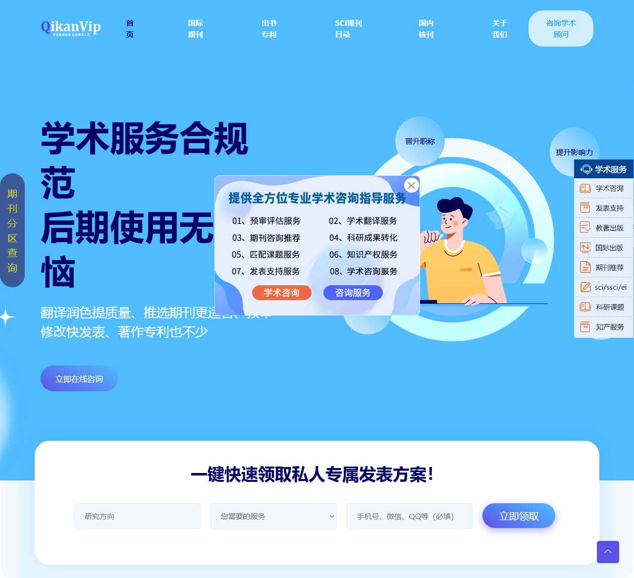 期刊VIP网专业从事中英文论文发表咨询服务20余年,服务涵盖评职所需著作出书、专利申请及英文SCI期刊论文、ssci期刊论文、EI会议等.期刊VIP的学术交流服务是您职称评审、学术交流的优质平台!