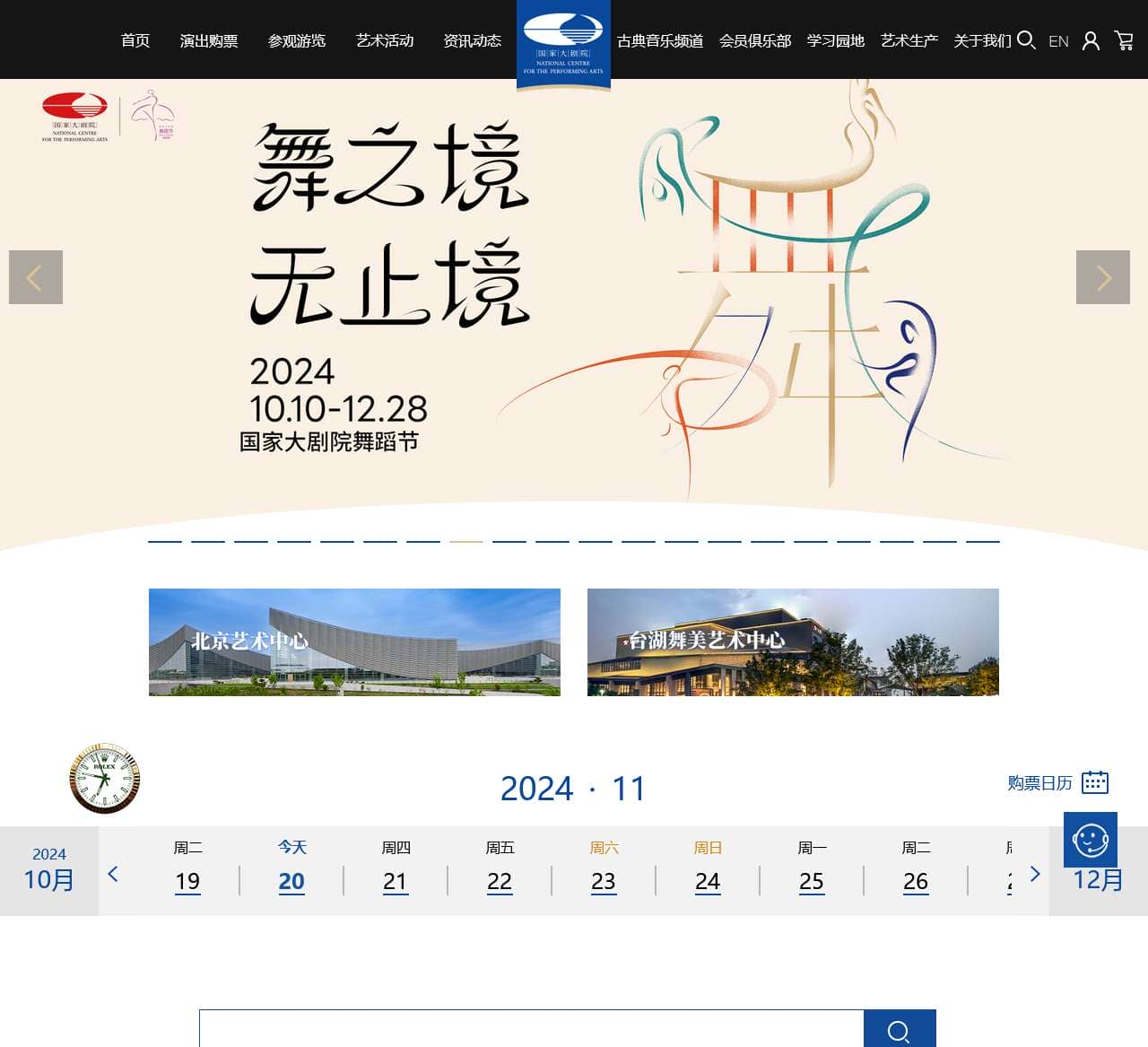 欢迎光临国家大剧院官方网站。查询最新演出资讯,在线选座订购演出票享至少九八折优惠,预订艺术普及活动票、参观票,高清演出视频、古典音乐免费视听