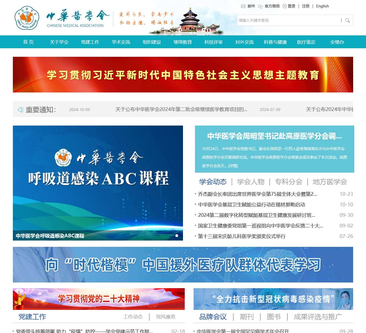 | 党建工作活动 | 党委带头统筹部署 助力“疫情”防控, 中华医学会召开警示教育会, 中华医学会、中国防痨协会赴岚县开展2020年“党建强会” |