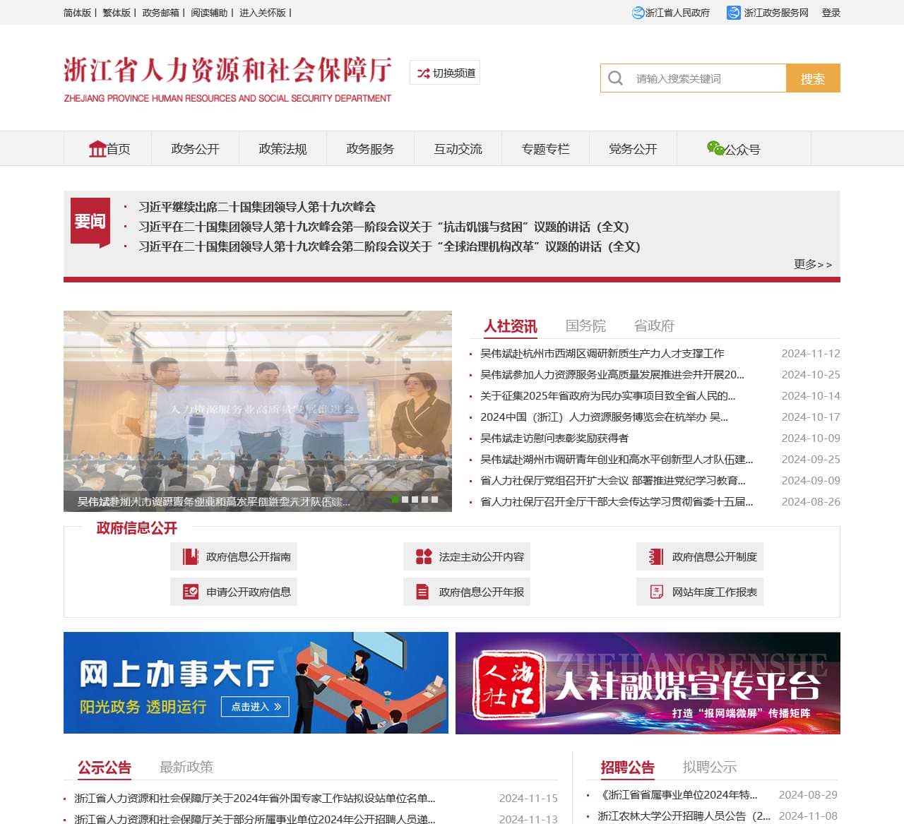| 公示公告 | 浙江省人力资源和社会保障厅关于2024年省外国专家工作站拟设站单位名单,浙江省人力资源和社会保障厅关于部分所属事业单位2024年公开招聘人员递补名单,浙江省人力资源和社会保障科学研究院关于公开招聘编外聘用人员的公告,浙江省人力资源和社会保障厅所属部分事业单位2024年公开招聘面试人员总名单 |