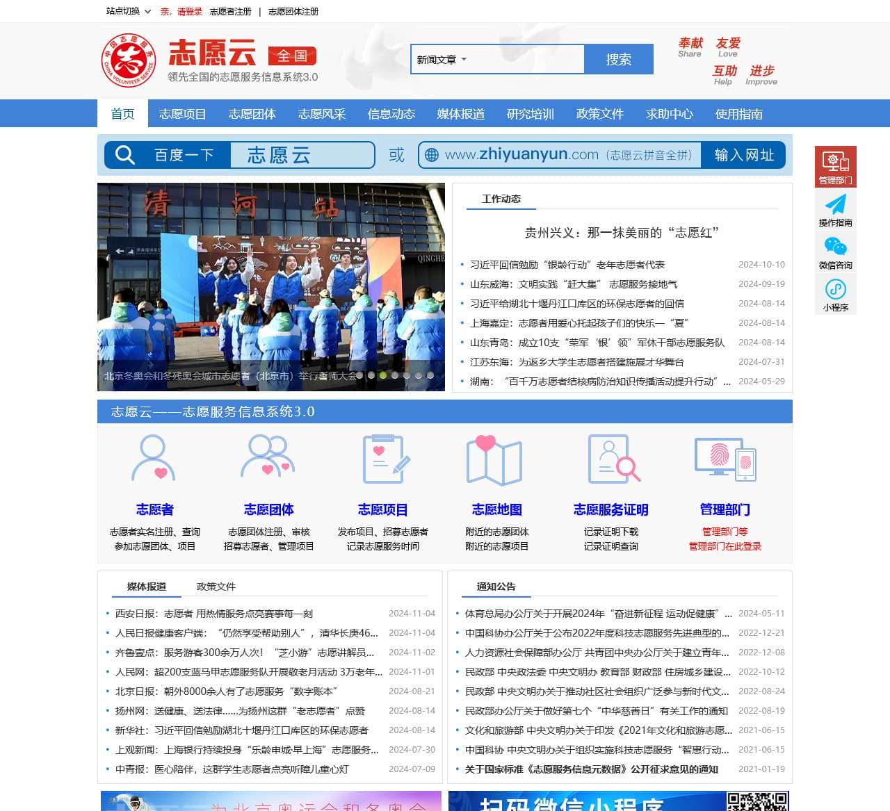 | 站点切换 | 领先全国的志愿服务信息系统3.0——志愿云 |