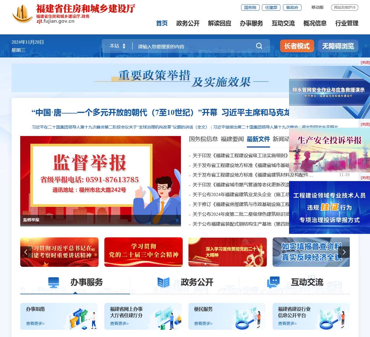 | 办事服务 | 企业资质申报和审批信息公示公开栏, 办理查询, 福建省建设行业信息公开平台, 福建省住房和城乡建设厅综合监管服务平台 |