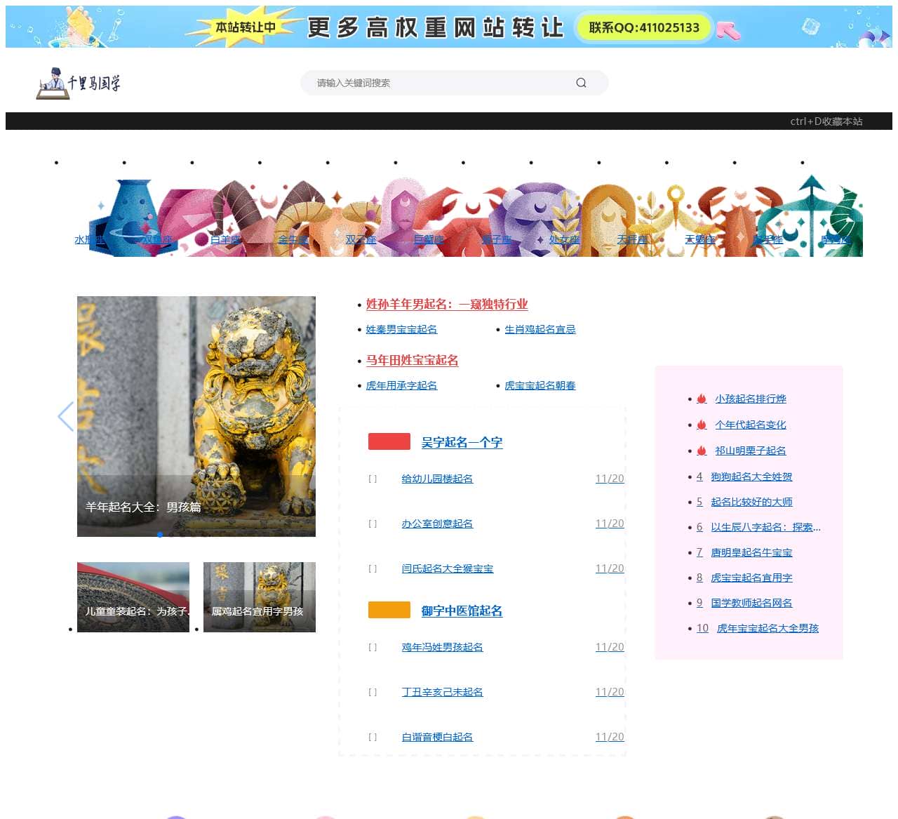 千里马国学网致力于优秀传统文化的传播,内有国学馆藏古籍、经史子集、中医、易学资料、国学五术、诸子百家、琴棋书画、民俗艺术、国学大师讲国学等国学栏目,可以筛选国学资料的电子书、文档等鉴赏解析分享!