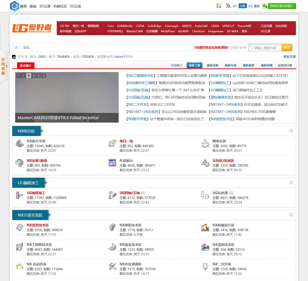 | 功能模块 | 登录、注册、会员、UG NX、每日一练、视频教程、软件报错、论坛APP、Creo、SolidWorks、CATIA、SolidEdge、Geomagic、ANSYS、AutoCAD、CAXA、VERICUT、PowerMill、HYPERMILL、MasterCAM、北京精雕、MoldFlow、ADAMS、Cimatron、Imageware、3D MAX、更多、Rhino、WorkNC、Inventor、元宝充值、论坛自助 |