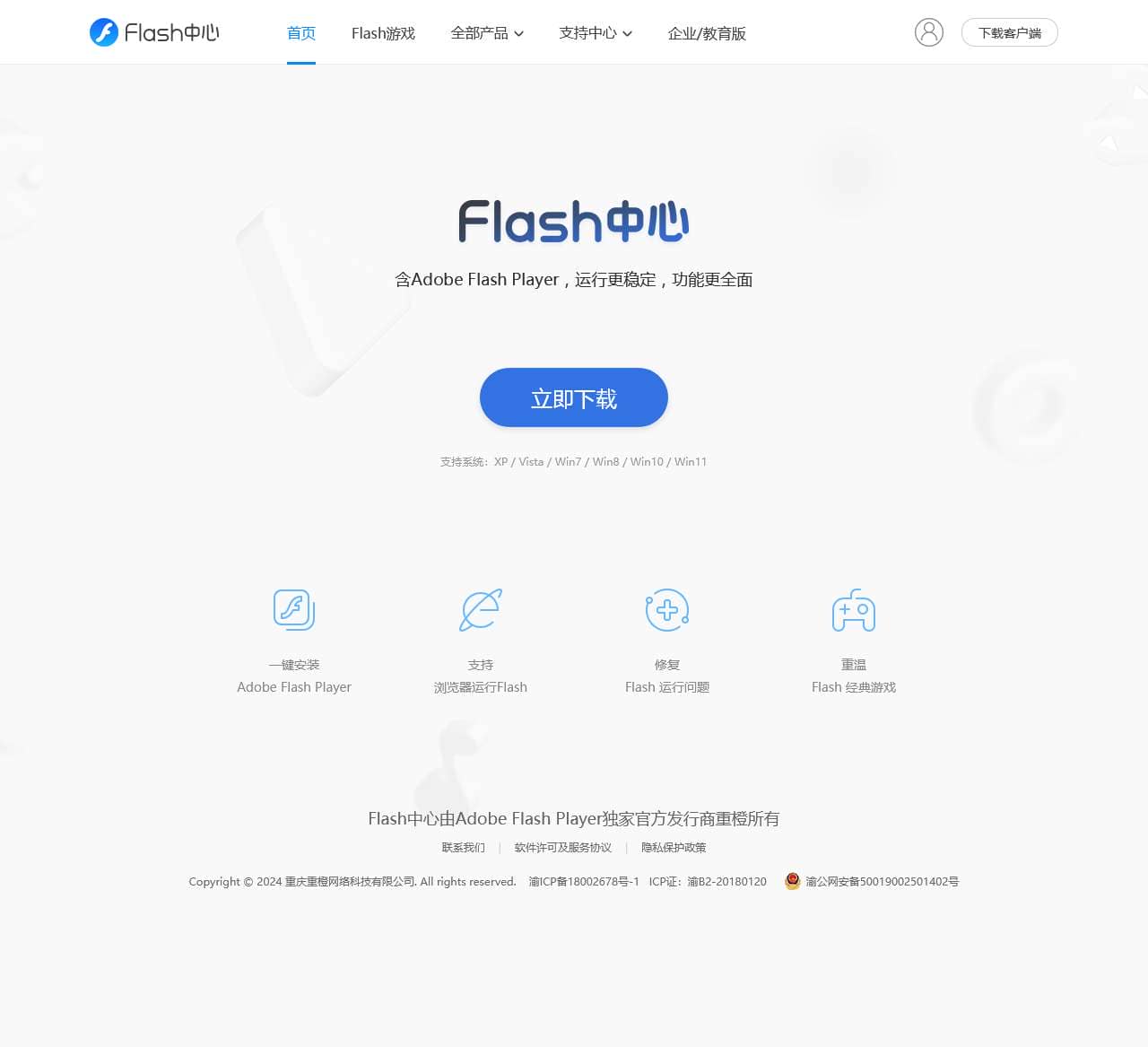 | Flash中心 | 一键安装、修复全版本Flash | 提供所有版本的Flash安装与修复功能 |