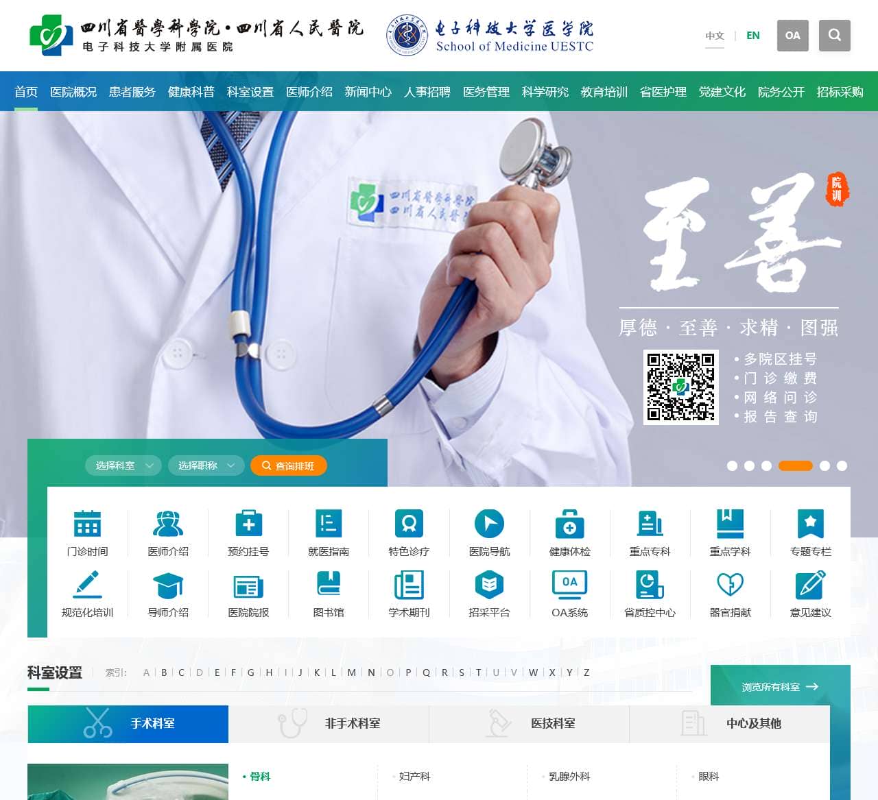 四川省医学科学院·四川省人民医院(首批国家三级甲等医院),是原中央大学医学院附属公立医院、中国科学院四川转化医学研究医院、电子科技大学附属医院、四川省红十字医院、川港康复中心;国际紧急救援中心网络医院及四川省急救中心所在地;电子科技大学附属医院和四川省高等医学院校临床教学基地。