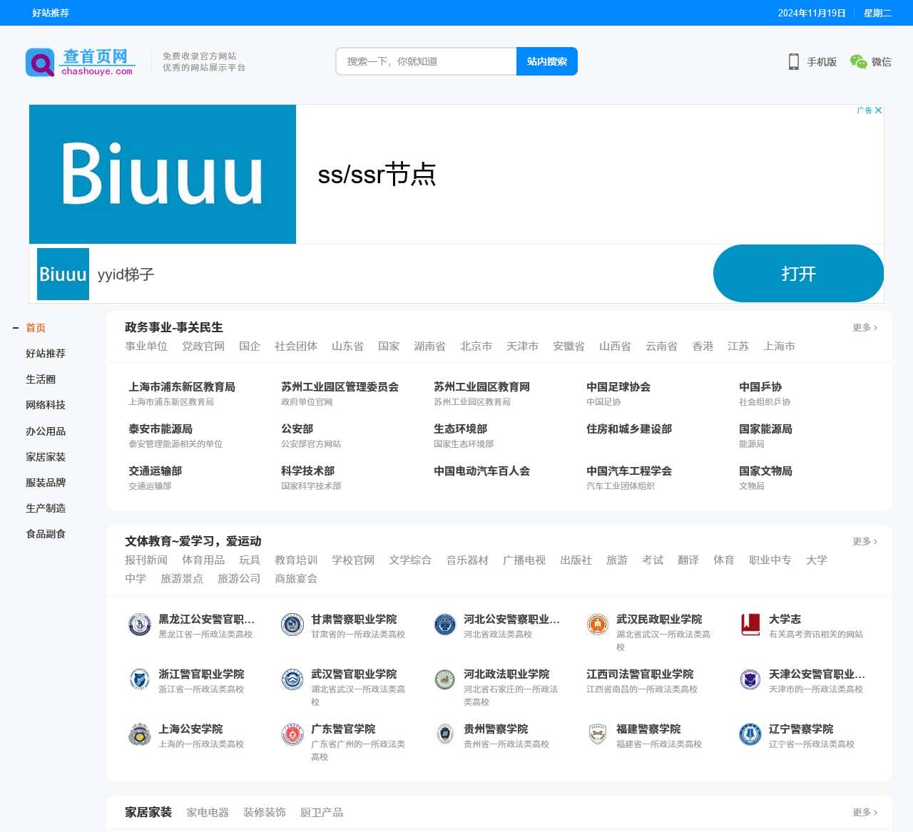 查首页网(chashouye.com)是一个免费收录和展示个人、企业网站和组织类官网的综合网址导航平台。