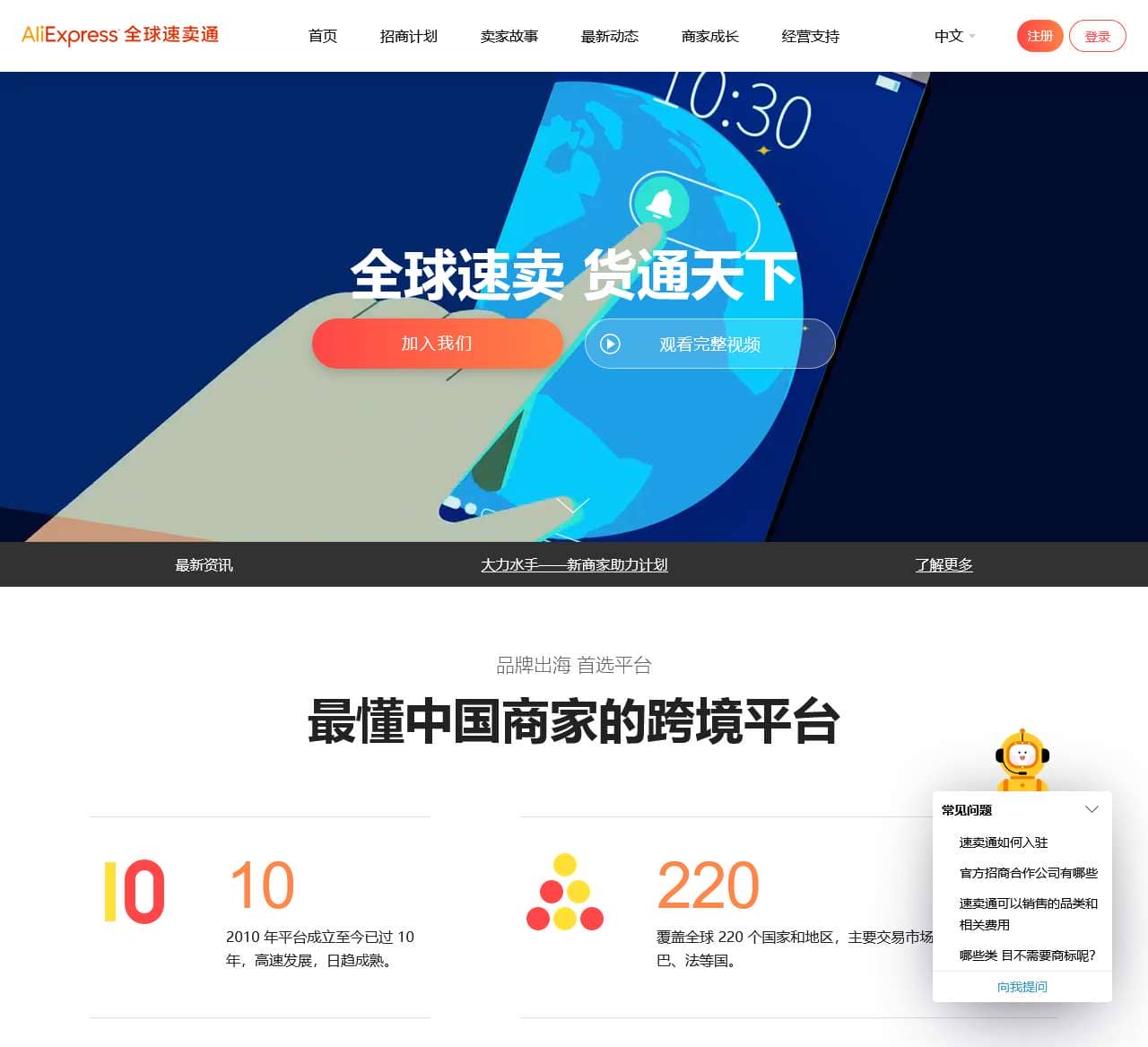 | 首页 | 招商计划,速卖通渠道招商合作伙伴,开店全指南,淘宝天猫商家入驻,申请「中国好卖家」,产地跨境专区,卖家故事,卖家成功故事,十大出海品牌,荣耀商家,最新动态,平台新闻,海外市场观察,商家成长,新商家助力,全球速卖通培训中心,超级私享课,神器阁-工具大全,经营支持,速卖通服务市场,速卖通物流介绍,规则频道 |