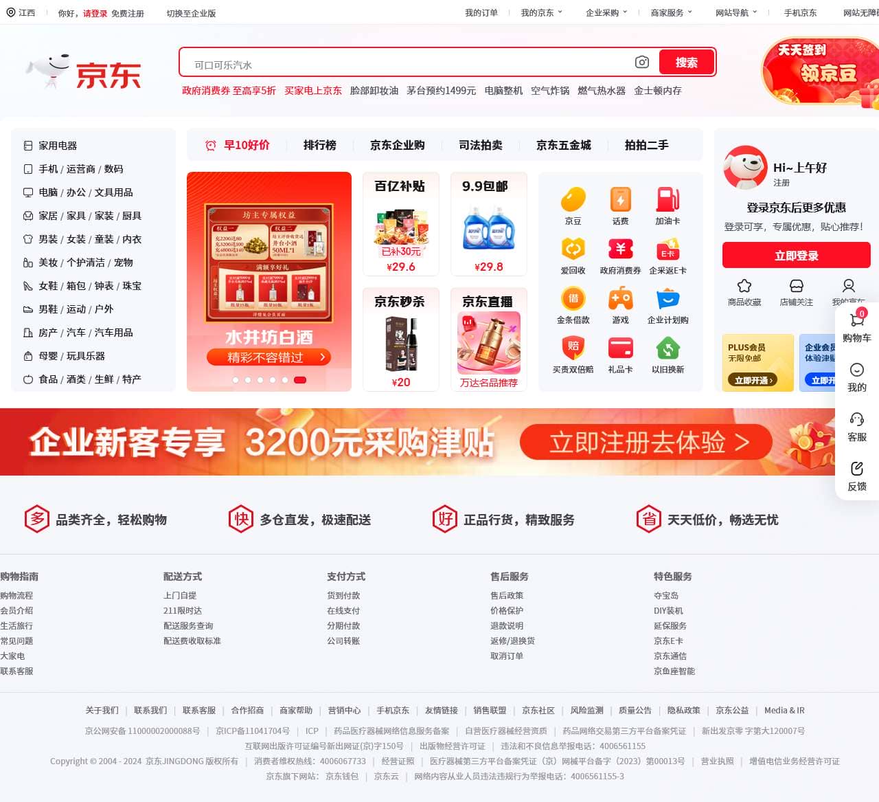 | 平台信息 | 京东, 你好,请登录, 免费注册, 切换至企业版, 我的订单, 我的京东, 企业采购, 网站无障碍, 京东多快好省, 我的购物车 |