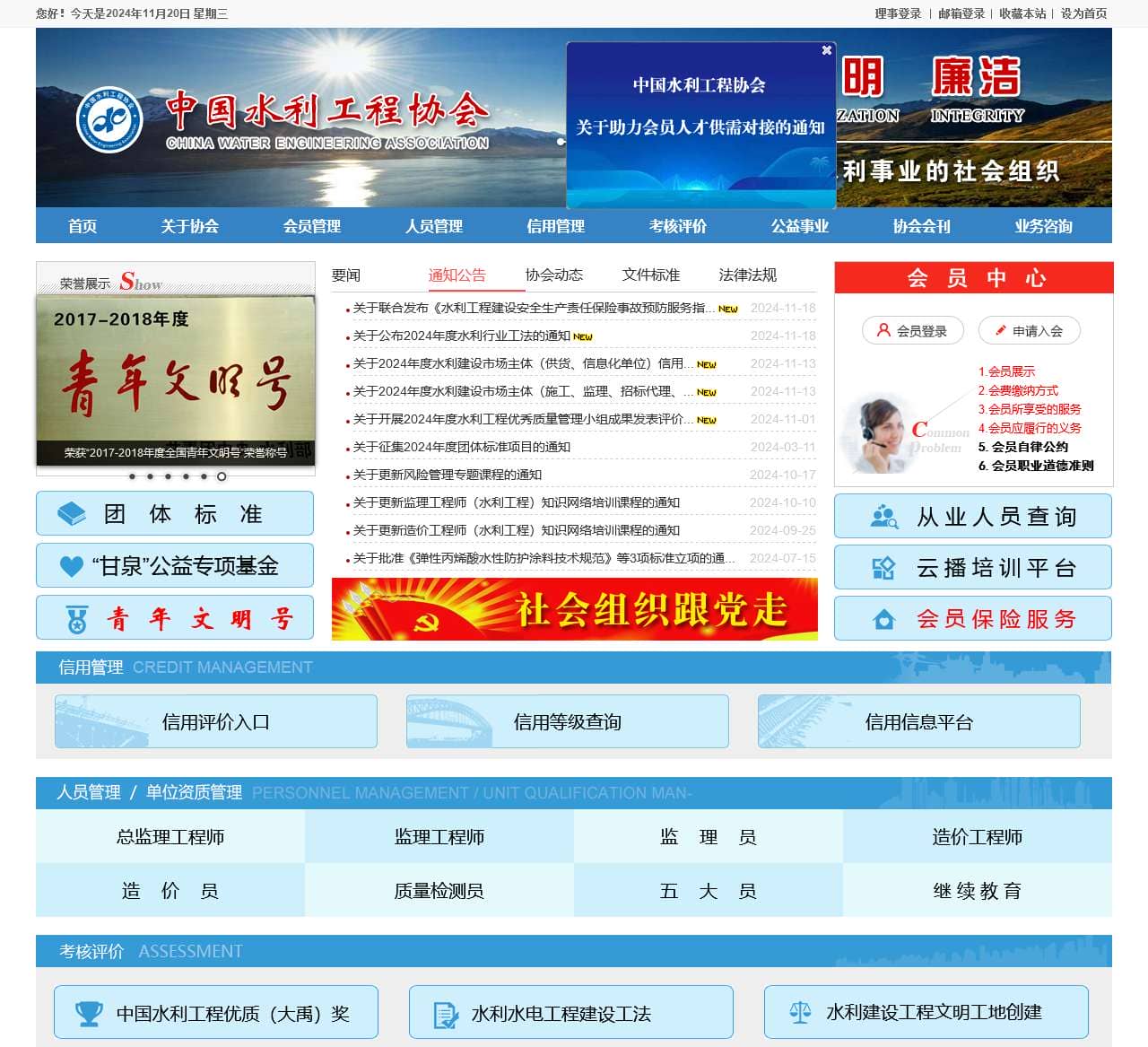 标签:综合其他 门户网站QC申报 从业人员职业生涯管理 全国水利工程建设管理 大禹奖申报 工法申报 市场主体信用管理 水利从业人员信息报送 水利从业人员资格管理中国水利工程协会成立于2005年8月18日,是由全国水利工程建设管理、施工、监理、运行管理、维修养护等企、事业单位及热心水利事业的其他相关组织和个人,自愿结成的非营利性、全国性的行业自律组织。