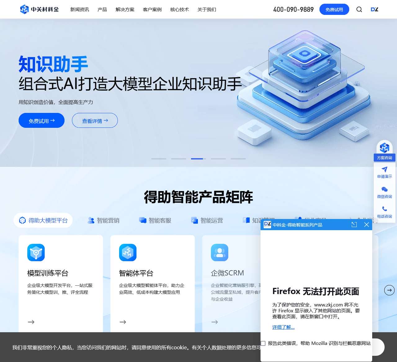 中关村科金通过自主研发的领域大模型、大数据分析、多模态交互三大核心技术,中关村科金打造了面向企业精准营销、服务体验、运营提效、安全合规、知识应用五大解决方案。「得助智能」是中关村科金打造的新一代智能交互产品品牌,覆盖云呼叫中心、知识助手、智能客服、智能外呼、智能陪练、智能音视频等产品矩阵。