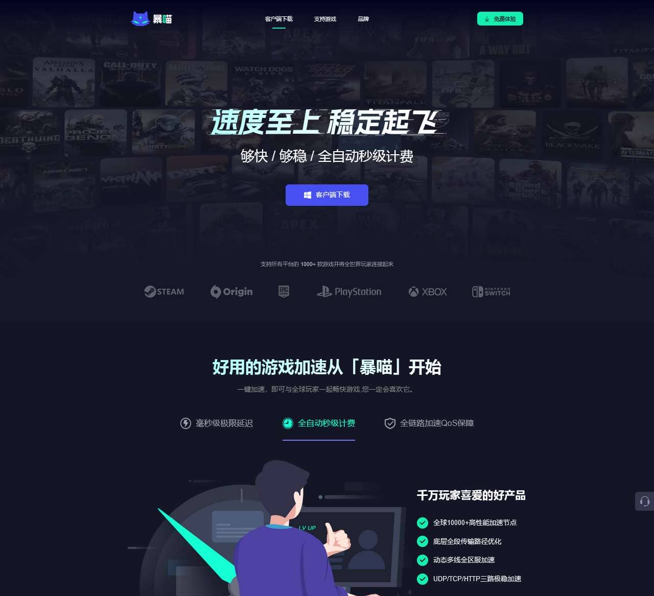 暴喵加速器,极速秒连、超低延迟,够快!专属高速通道,零丢包,够稳!全自动计费,不用不扣钱,够省!最长3无理由退款,安心、放心且舒心的服务保障!