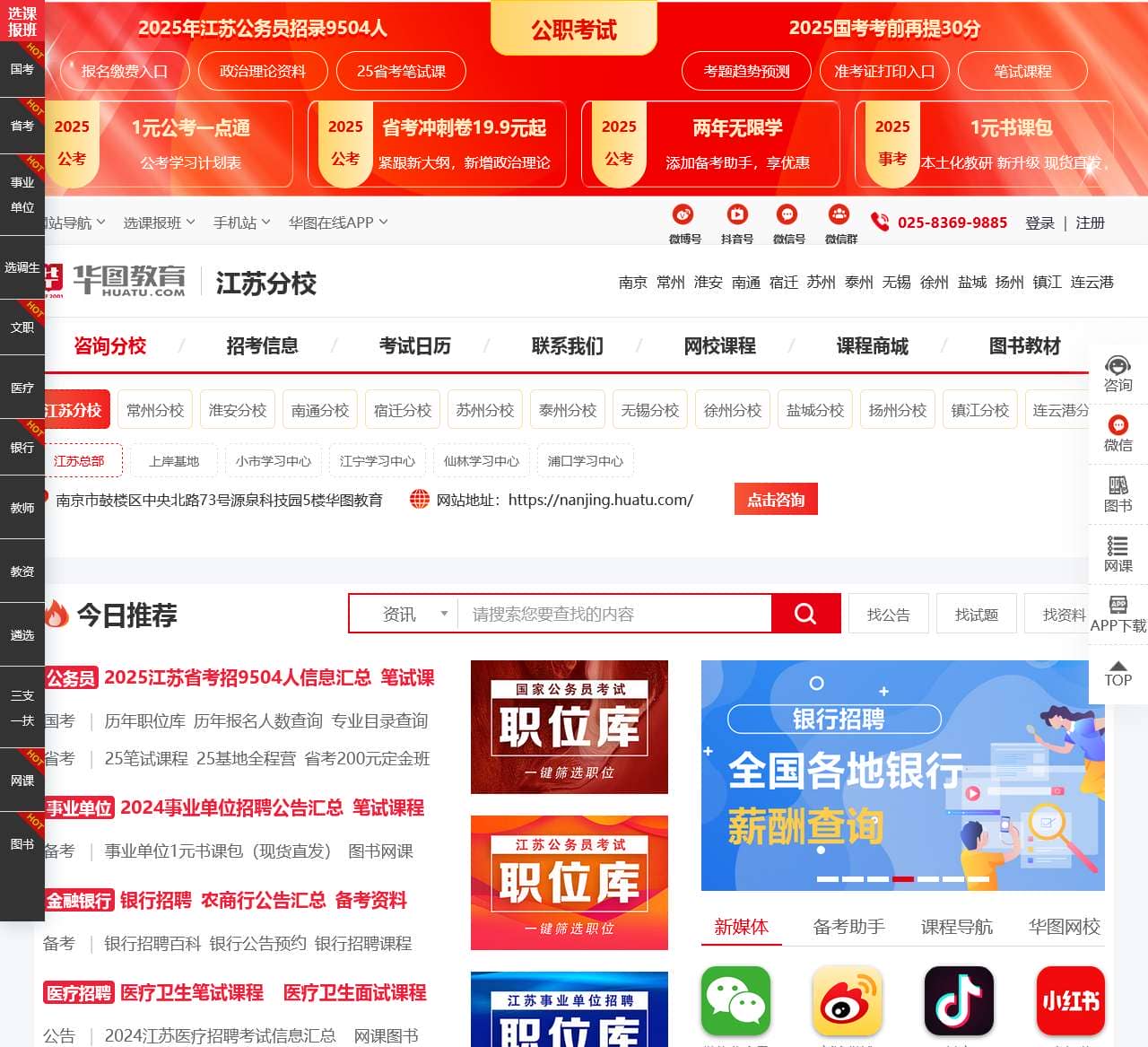 江苏华图教育网提供江苏华图官网,江苏公务员招聘,江苏事业单位考试信息,发布江苏公务员,国家公务员,江苏事业单位招聘等考试公告,职位表,报名入口,面试公告及成绩查询等公考资讯,江苏华图是江苏招考考试培训辅导知名网站.