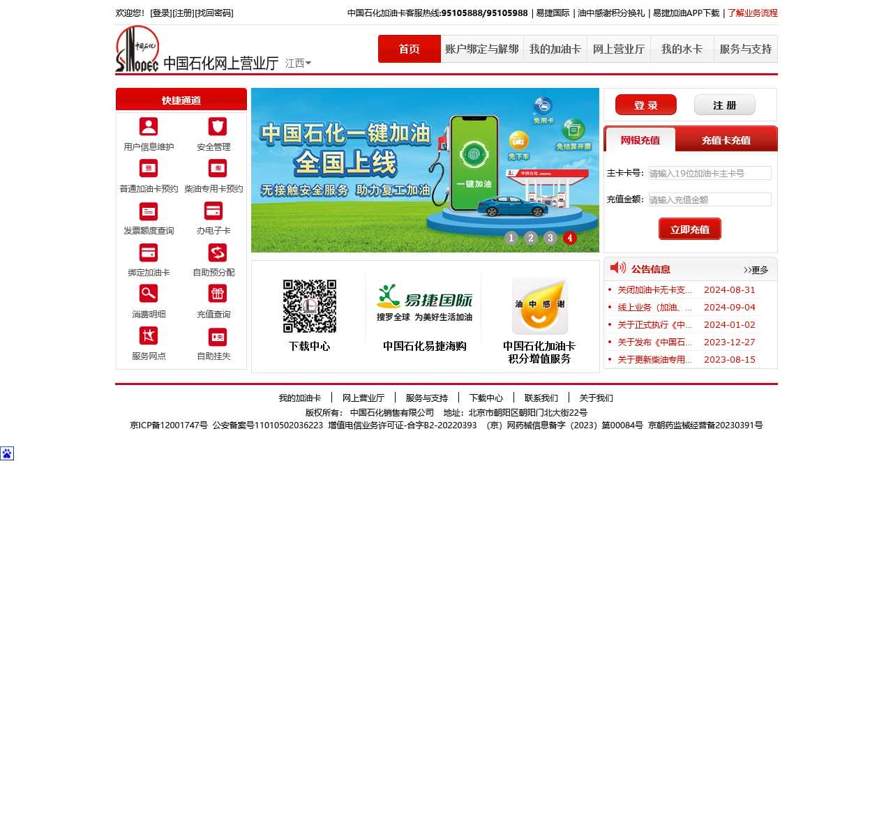 关于中国石化加油卡网上营业厅特别声明