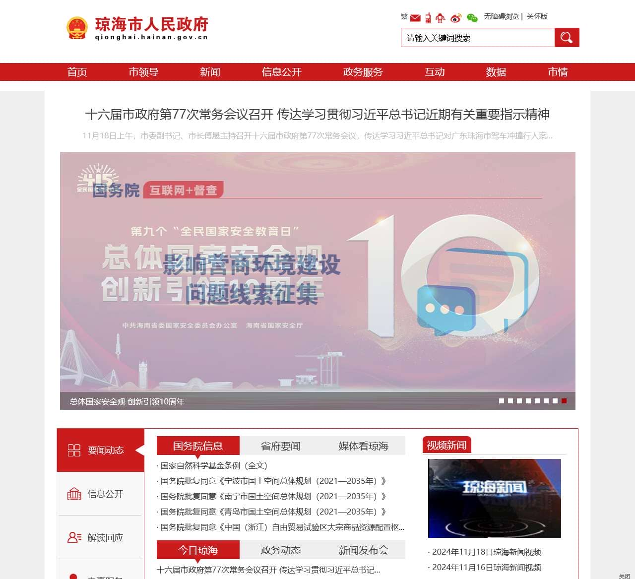 | 办事服务 | 互动交流、国务院信息、省府要闻、媒体看琼海 |