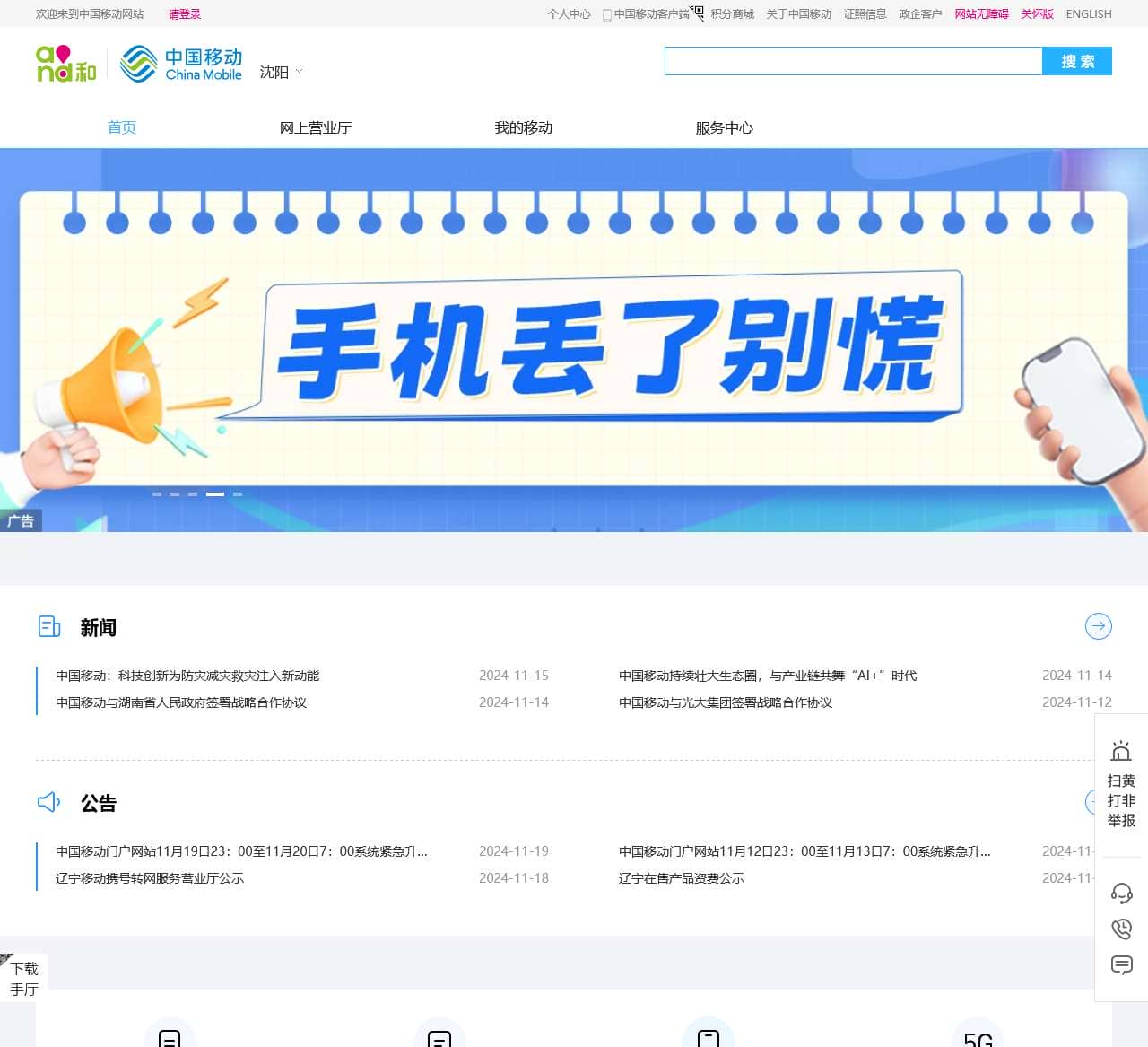 | 中国移动用户端 | 积分商城、关于中国移动、证照信息、政企用户、网站无障碍、关怀版、ENGLISH |
