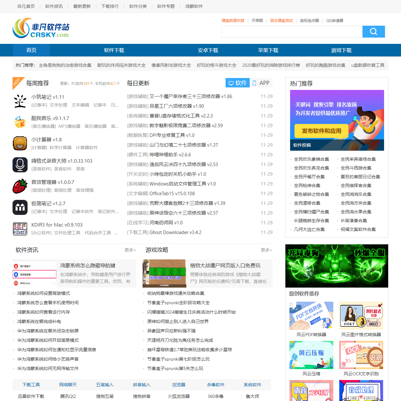 | 软件名称与版本 | 小筑笔记 v1.11 [记事本], 酷我音乐 v9.1.1.7 [音乐播放器], 小计算器 v1.8 [计算器], 嗨格式录音大师 v1.0.33.103 [录音软件], 音效管理器 v1.0.0.7 [音频处理], 极简笔记 v1.2.7 [记事本], KDiff3 for Mac v0.9.103 [办公软件], 又一个僵尸幸存者三十三项修改器 v1.86 [游戏辅助], 异星工厂六项修改器 v1.90 [游戏辅助], 惠普U盘存储格式化工具 v2.2.3 [系统辅助], 数字魅影极限竞赛二项修改器 v2.59 [游戏辅助], 山门与幻境二十七项修改器 v1.37 [硬件工具], 哔哩哔哩助手 v2.6.6 [游戏辅助], 逸剑风云决四十九项修改器 v2.53 [游戏辅助], 小烤包定时关机小助手 v1.0 [开关定时], Windows启动文件管理工具 v1.0 [系统辅助], OfficeTab15 v15.0.108 [文字编辑], 荒野大镖客救赎2十三项修改器 v1.39 [游戏辅助], 黑神话悟空六十三项修改器 v2.57 [游戏辅助], 河南药师网 v1.0 [在线学习], Ghost Downloader v3.4.2 [下载工具], 全民奇迹超级助手 v20.0.3安卓版 [其它软件], 金钱狂热 v1.0.2安卓版 [其它游戏], 多多助理 v1.9安卓版 [办公考试], the road driver v1.4.1安卓版 [其它游戏], 打工太难了 v2.6安卓版 [其它游戏], 长笛演奏安卓版 v1.4安卓版 [益智休闲], 八佰 v2.0安卓版 [飞行射击], 物流神州保 v00.00.0005安卓版 [办公考试], 火纹英雄 v2.7安卓版 [塔防游戏], 边境猎人: 艾尔莎的命运之轮 v1.0安卓版 [动作游戏], 愚人之城硬盘版 V1.2安卓版 [其它游戏], 大皇帝GM版 v1.0.2安卓版 [其它游戏], 外星实验室 v1.0.2安卓版 [益智休闲], 全民找成语 v1.3安卓版 [益智休闲], 外研社四年级英语下册 v1.0.9安卓版 [办公考试] |