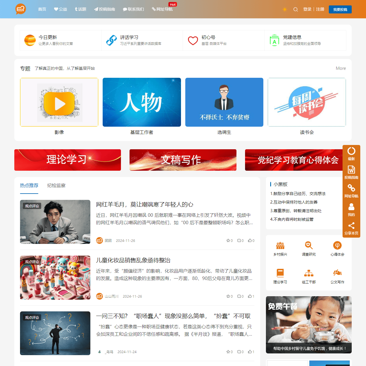 基层网定位为基层青年干部的学习平台和思想门户,致力于传播知识、追求真知、分享思想,旨在推动基层工作创新、塑造基层新精神。