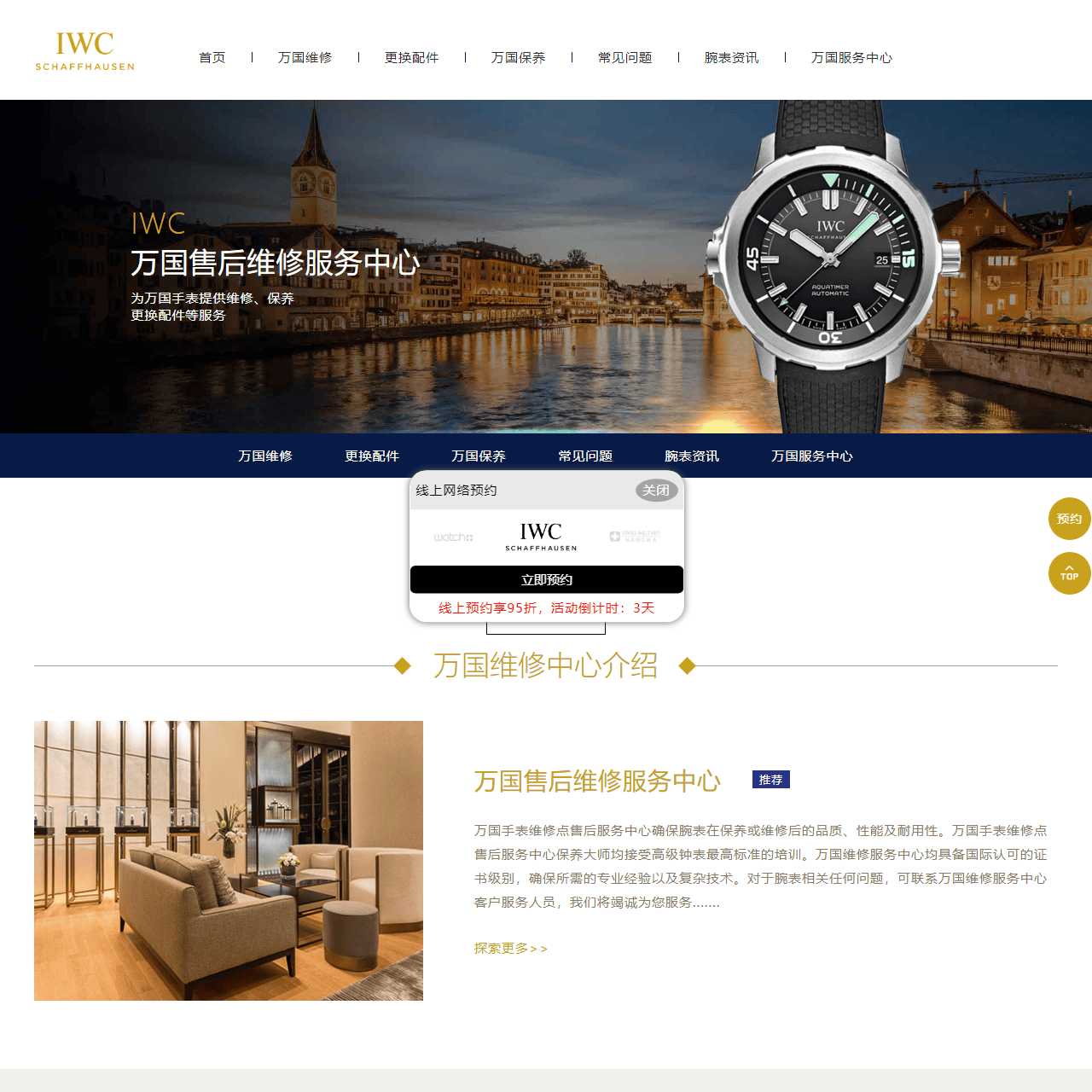 | 检测服务 | 万国手表走时检测、万国手表防水处理、万国手表故障检查、万国手表洗油保养、万国手表外观修复、万国手表带服务 |