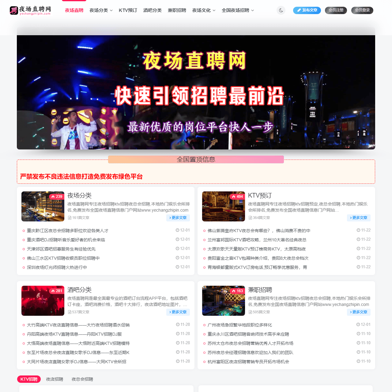 夜场直聘网(www.yechangzhipin.com)为您提供全国热门城市的夜场求职招聘服务及夜场门户行业资讯,每日更新各地区夜场招聘/KTV招聘/夜总会/模特/佳丽/等最新招聘信息,免费发布和浏览最新行业资讯,夜企招人发帖,夜店人才求职招聘平台,海量热门招聘信息,真实有效,快速找到好工作就在夜场直聘网。