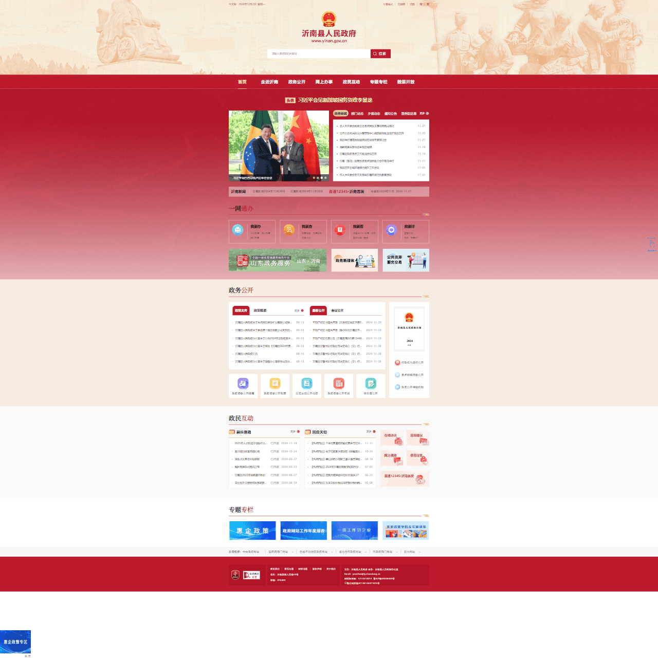 | 导航 | 首页、走进沂南、政务公开、网上办事、政民互动、专题专栏、数据开放 |