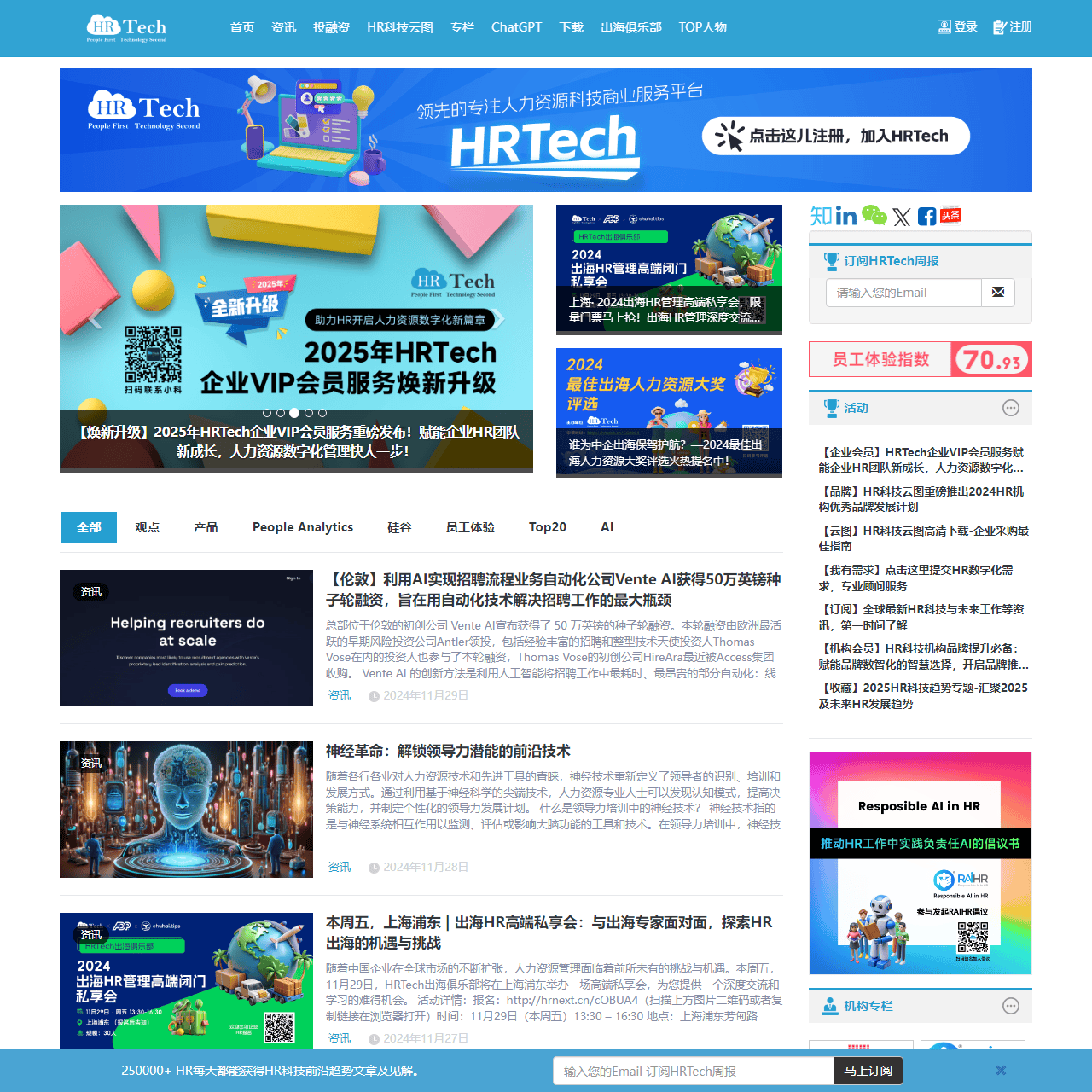 | 首页 | 资讯, 投融资, HR科技云图, 专栏, ChatGPT, 下载, 出海俱乐部, TOP人物, 登录, 注册 | |||