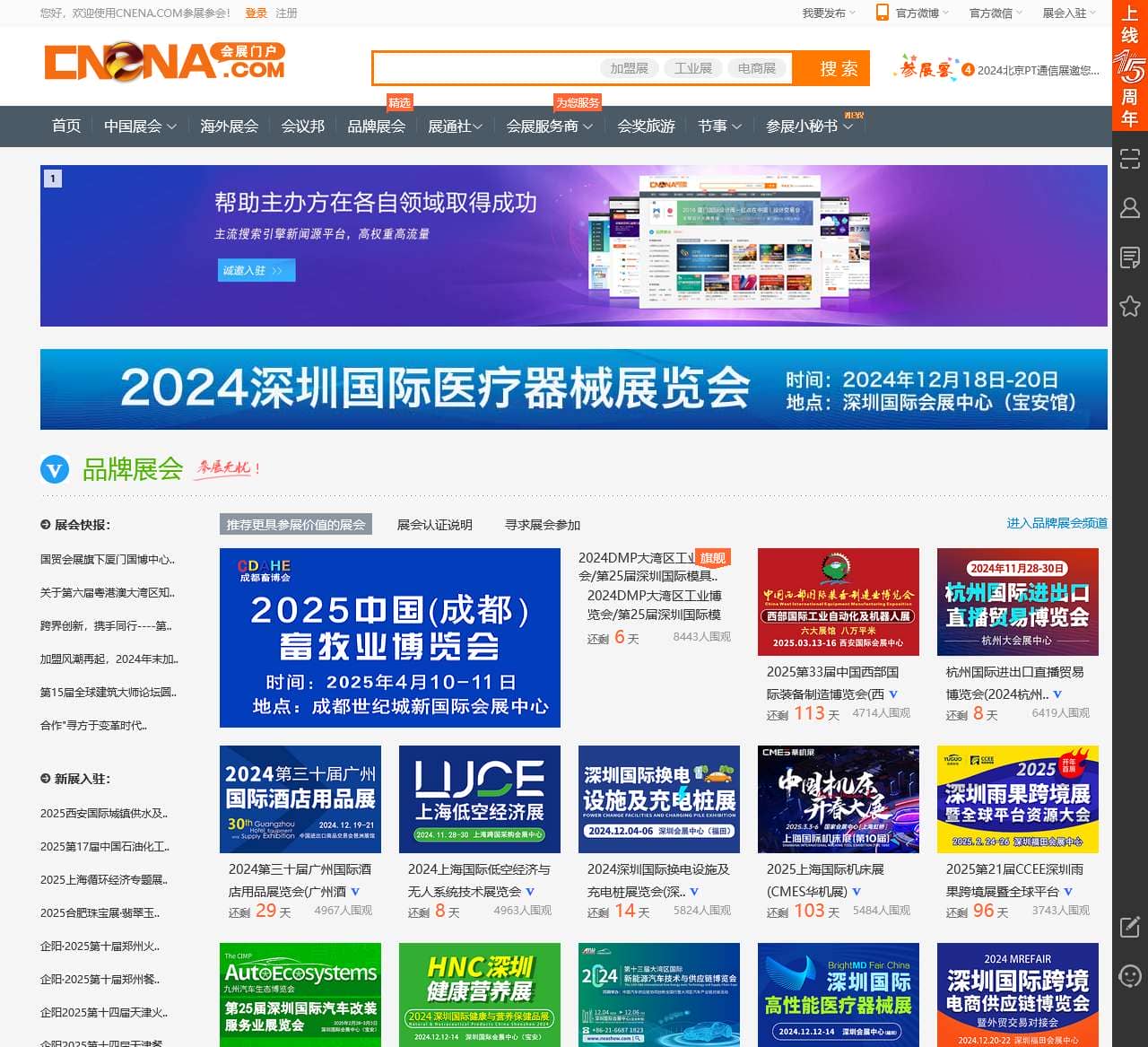 全球7万+展会驻站招展,每年都有海量企业从这里走向全球展会现场。CNENA深耕中国会展业15年,是主流搜索引擎新闻源网站。每场展会均由组展方驻站上传。信息零采集,参展更放心!