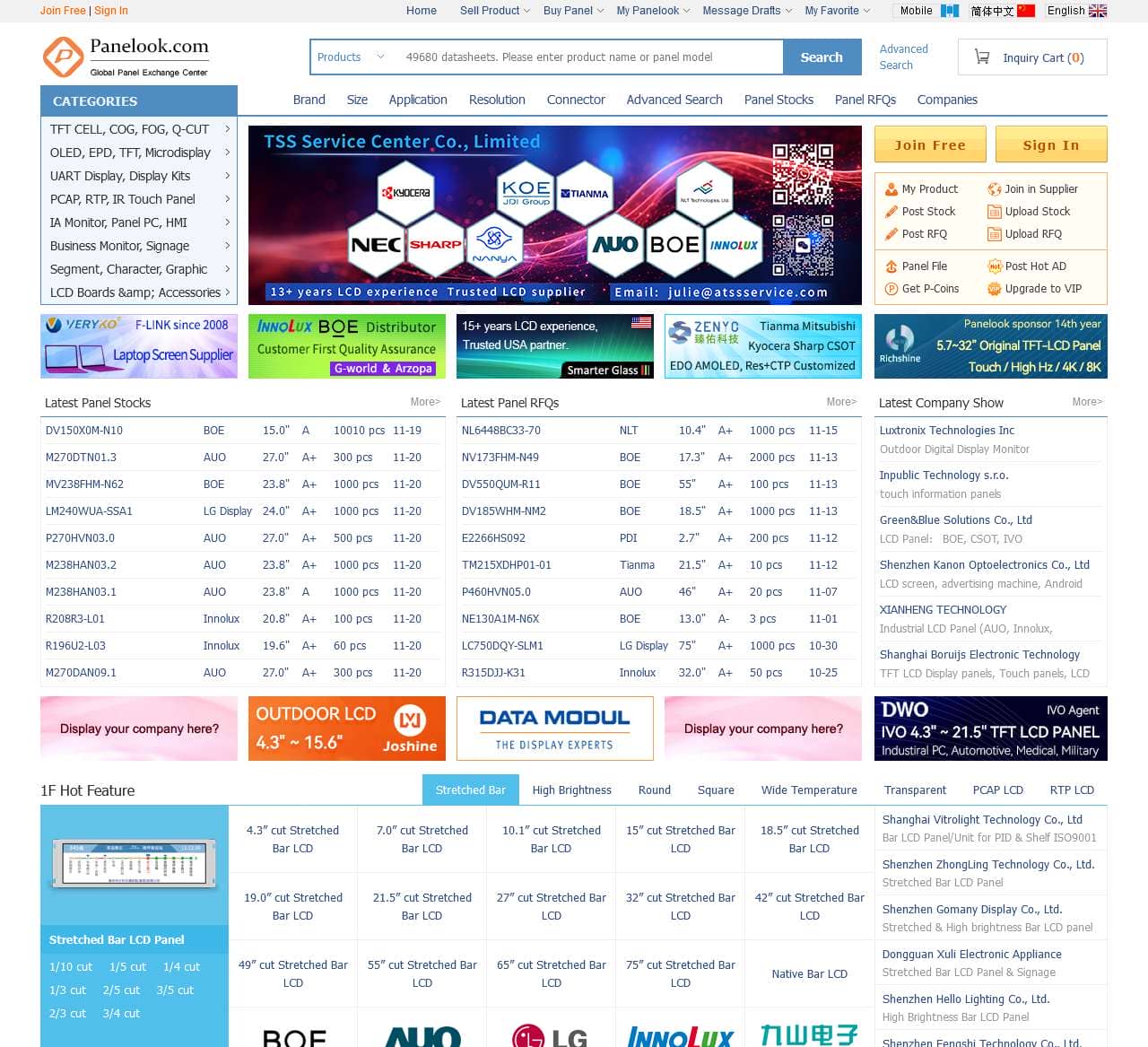 30K+ LCD panel models, 32K+ LCD panel datasheets, 10M+ pcs panel stocks, 180+ panel sizes, 100+ parametres, 70+ LCD panel brands, 30+ LCD panel applications.