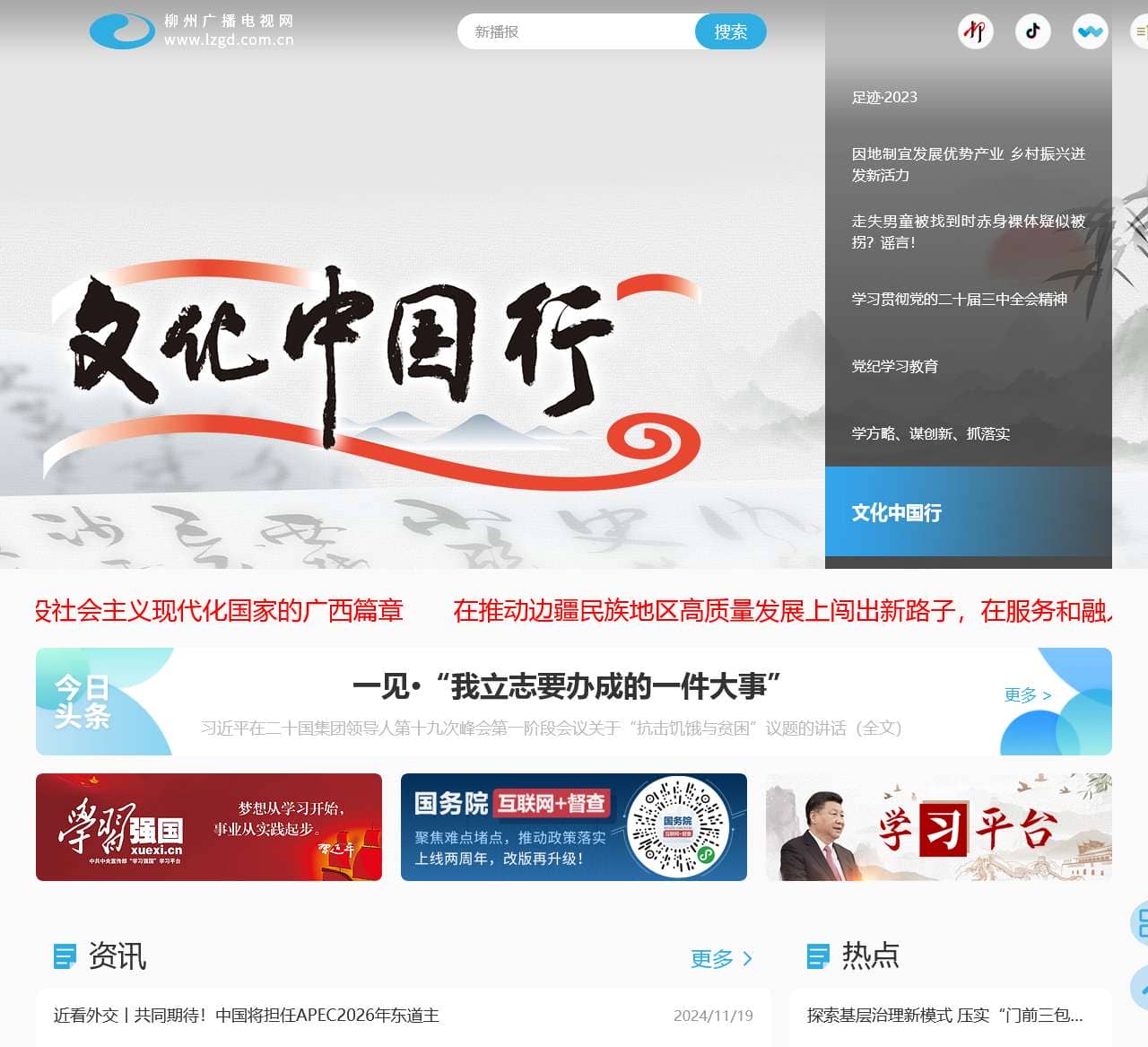| 专题 融媒矩阵 | 一见·“我立志要办成的一件大事” | 习近平在二十国集团领导人第十九次峰会第一阶段会议关于“抗击饥饿与贫困”议题的讲话(全文) | 习近平会见墨西哥总统辛鲍姆 | 习近平 | 2024年11月19日柳州新闻 |