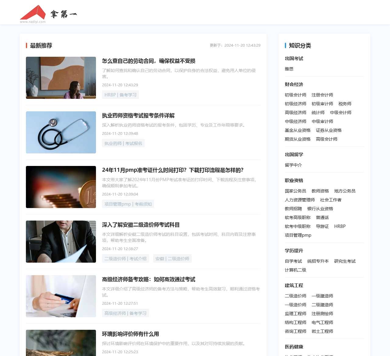拿第一提供职业教育,语言培训,出国留学,考研等高等教育的资讯内容,培训课程,满足各种学习需求。