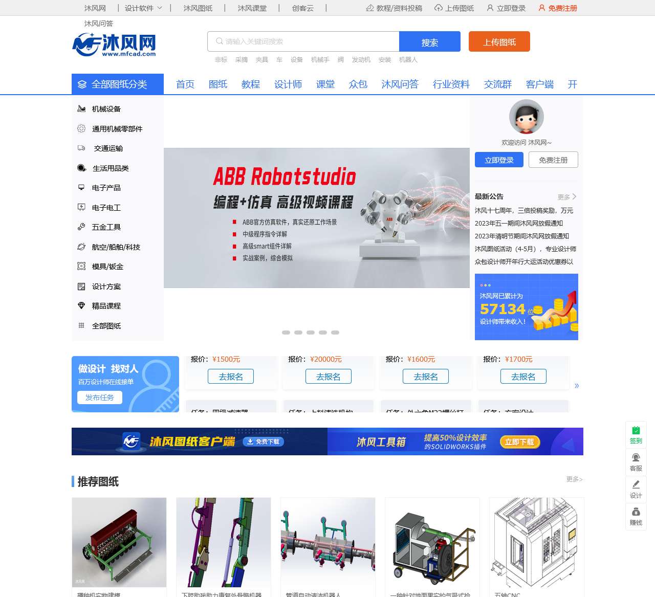 沐风网是一家综合性图纸素材平台,提供AutoCAD/Solidworks/ProE/Creo/CATIA/UG/inventor/CAXA/solidedge等图纸的素材下载及免费教程。