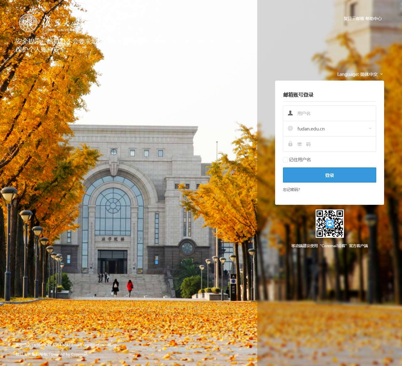 | 邮箱域名列表 | fudan.edu.cn、shmu.edu.cn、webmail.shmu.edu.cn、swk.shmu.edu.cn、cancer.shmu.edu.cn、eent.shmu.edu.cn、erkyy.shmu.edu.cn、fys.shmu.edu.cn、goh.shmu.edu.cn、hsh.shmu.edu.cn、jsyy.shmu.edu.cn、sci.shmu.edu.cn、shmu.cn、zsyy.shmu.edu.cn |