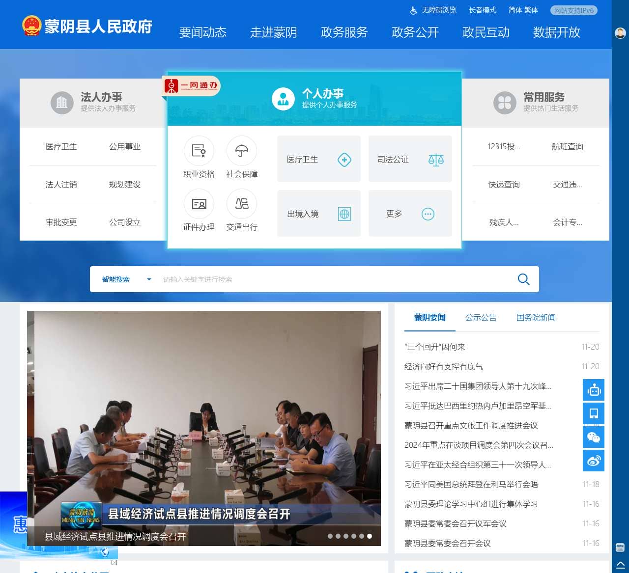 | 要闻动态 | 走进蒙阴,政务服务,政务公开,政民互动,数据开放,无障碍浏览,长者模式 |