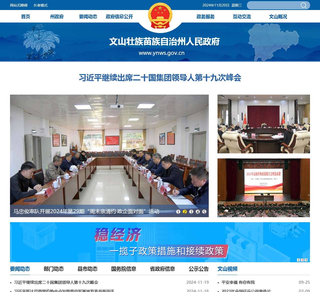 | 要闻动态 | 习近平继续出席二十国集团领导人第十九次峰会 陈明到广南县接访下访时强调:坚决维护好群众合法权益 马忠俊率队开展2024年第29期“周末亲清约·政企面对面”活动 州十五届人大常委会召开第61次党组(扩大)会议 州十五届人大常委会召开第69次主任会议 州人大常委会机关学习贯彻党的二十届三中全会精神专题党课举行 |