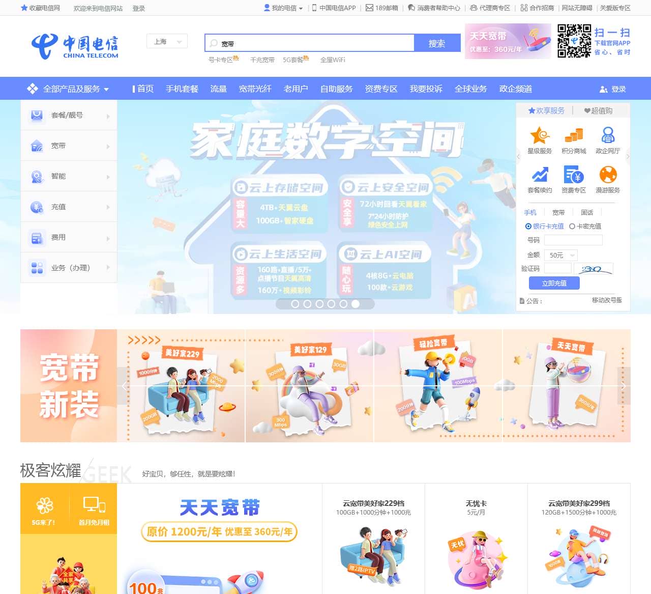 中国电信官方网站•上海(原上海中国电信网上营业厅)-在线销售数码通讯、套餐/靓号等产品、正品低价、品质保障。同时为用户提供充值缴费、宽带办理、费用查询、在线客服、及品牌专区等全方位的网上自助服务;中国电信——世界触手可及。