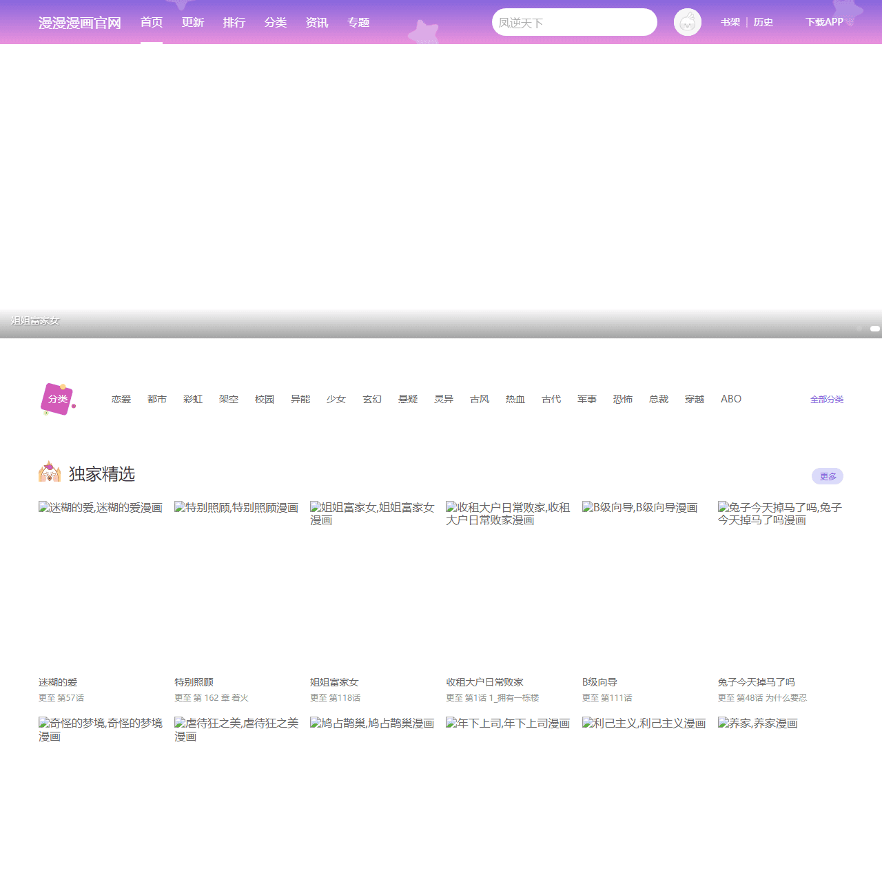 漫漫漫画官网是一个在线免费观看漫画的网站,采用下拉式阅读方式,方便浏览,每天更新国漫、日漫、韩漫、港漫、欧美漫等最新最热门的漫画,全站无广告、更新速度快、访问速度快、带给您优质的阅读体验,站内有几万部漫画,是漫迷们值得收藏的漫画网站。