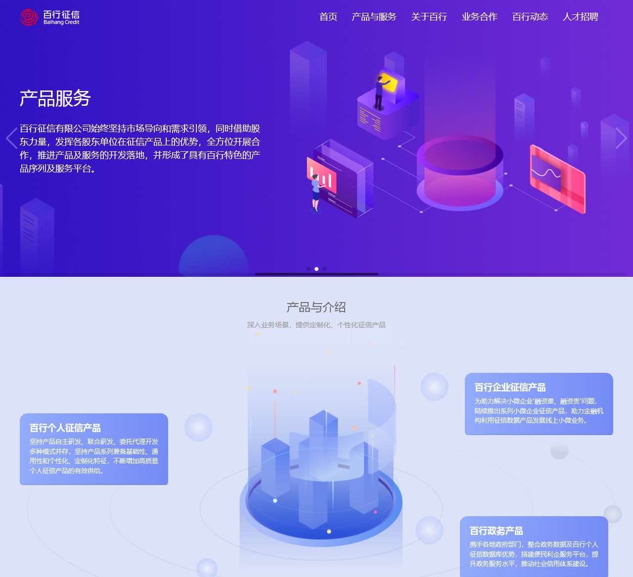 | 百行企业征信产品 | 为助力解决小微企业“融资难、融资贵”问题,陆续推出系列小微企业征信产品,助力金融机构利用征信数据产品发展线上小微业务。 |